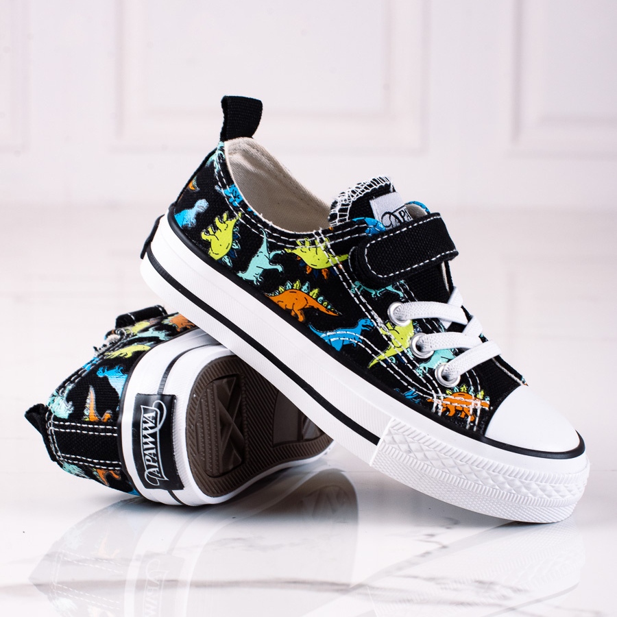 Les baskets dinosaures noires pour garçon Shelovet sont le choix parfait pour les petits explorateurs qui aiment allier confort et style tendance. Ces charmantes chaussures, décorées de motifs de dinosaures colorés, attireront certainement l'attention de tous les tout-petits et deviendront en même temps un élément pratique de la tenue de tous les jours.
