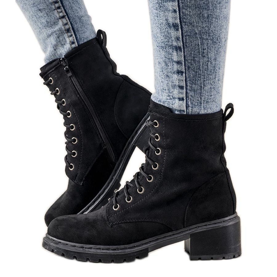Les bottes élégantes et universelles doivent avoir des bottes en cuir écologique en daim en noir intemporel. Le design combine une semelle à la mode et la semelle avec la commodité de l'utilisation quotidienne - c'est un modèle idéal pour la saison d'automne et d'hiver, que vous pouvez facilement mélanger avec de nombreux styles.