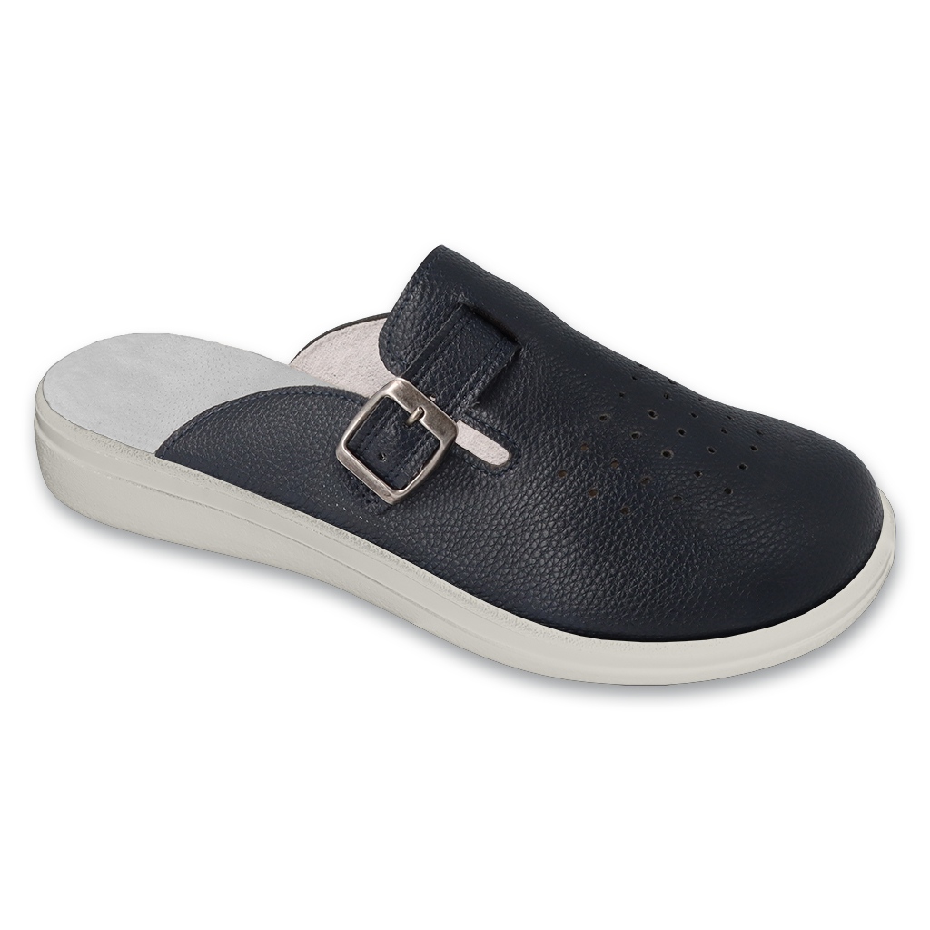 Fabriqué en cuir extérieur biologique, les tongs offrent non seulement une durabilité, mais aussi une facilité de soins. L'insert en cuir naturel offre une excellente ventilation et commodité, ce qui est particulièrement important à long terme. Le modèle Dr.Orto Befado est une combinaison de design moderne avec une forme ergonomique, ce qui en fait une excellente solution pour les personnes travaillant dans les soins de santé et tous ceux qui veulent s'occuper de la santé de leurs pieds.