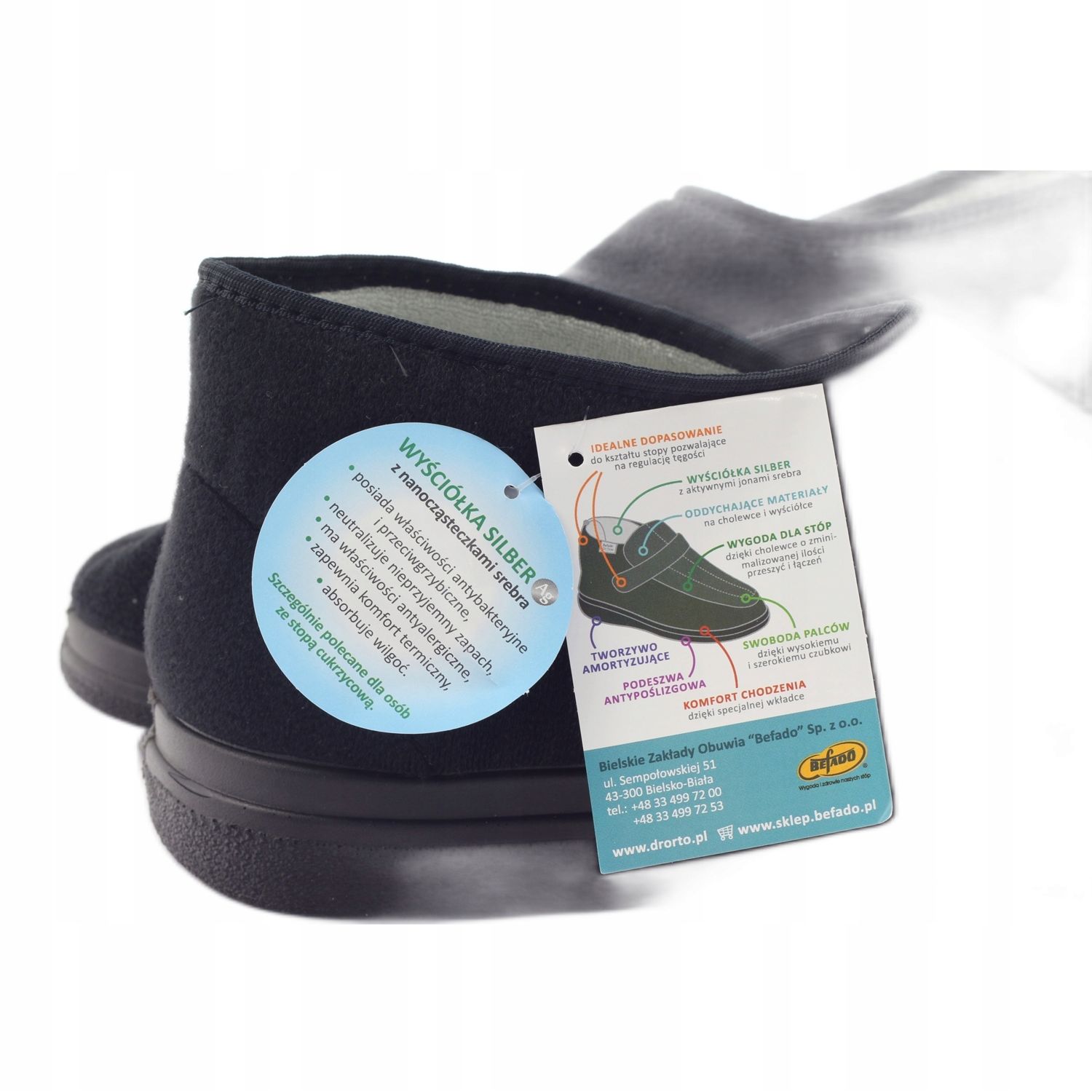 Befado Dr.Orto sont des chaussures conçues pour les personnes ayant les pieds sensibles, notamment celles souffrant du syndrome du pied diabétique ou de lésions rhumatoïdes. Grâce à la technologie utilisée et au certificat « Healthy Foot », les chaussons offrent le soutien nécessaire aux personnes ayant des problèmes de santé liés aux jambes.