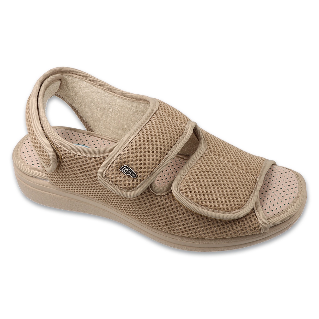 Le matériau en maille à partir desquels les sandales sont fabriqués garantissent une excellente circulation de l'air, ce qui est particulièrement important les jours chauds. Une semelle stable avec une hauteur de 3,5 cm avec la plate-forme garantit la sécurité en marche, et la recommandation de l'association polonaise des diabétiques met l'accent sur leur utilisation préventive, en particulier pour les personnes ayant des problèmes diabétiques.