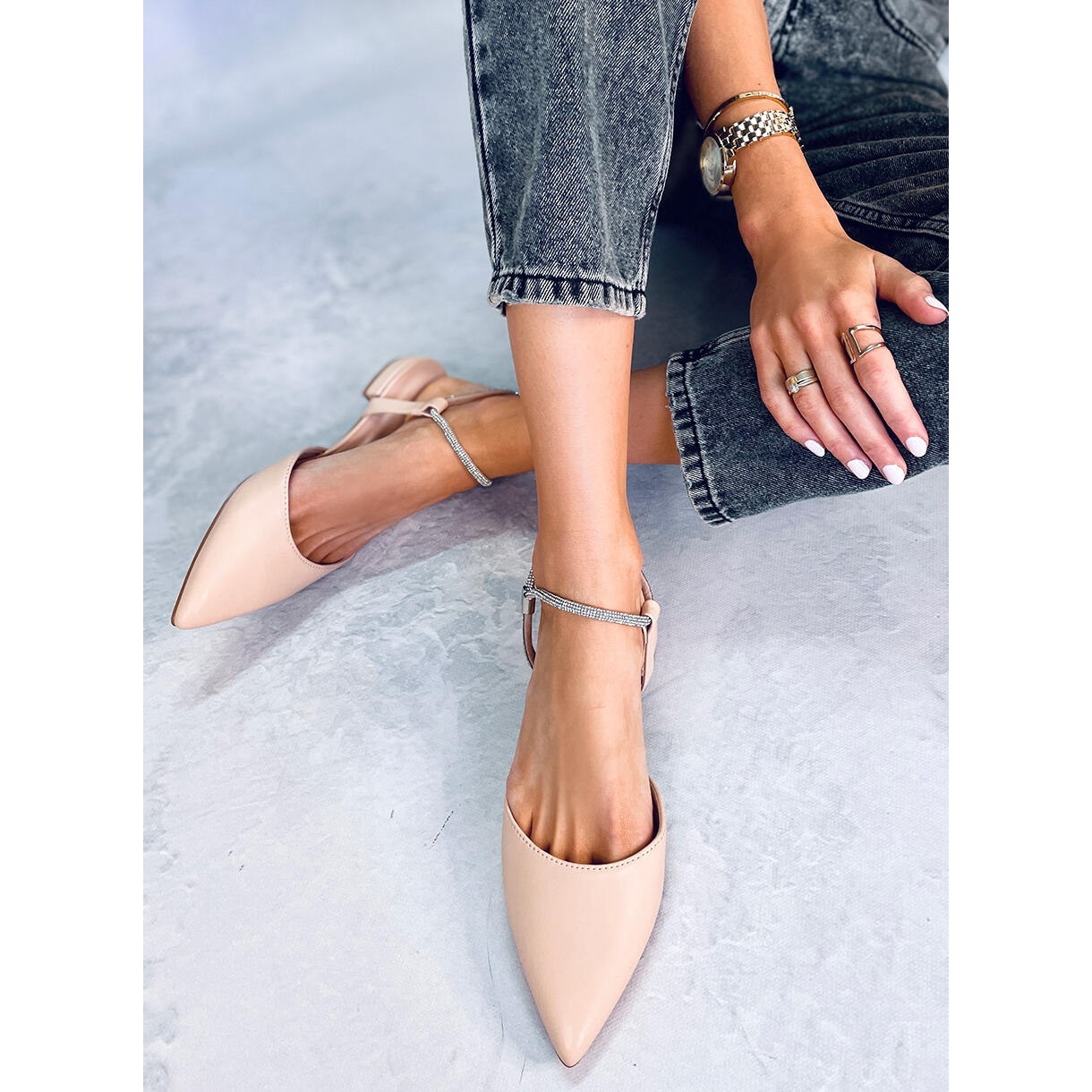 L'une des caractéristiques les plus charmantes de ce modèle sont les brides brillantes parsemées de zircons, qui donnent un caractère élégant aux ballerines. La décoration en pierre scintille subtilement à chaque pas, attirant l'attention et ajoutant de l'éclat même au style le plus simple.