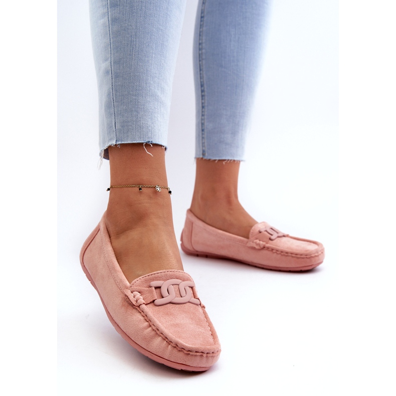 Découvrez le charme et la commodité des mocassins féminines écologiques roses et roses, qui sont un ajout idéal à chaque stylisation féminine! Fabriqués en daim eco de haute qualité, ils se caractérisent par la douceur et le plaisir de porter. À l'avant des chaussures, il y a une décoration élégante sous la forme d'une chaîne en plastique, ce qui leur donne un caractère unique.