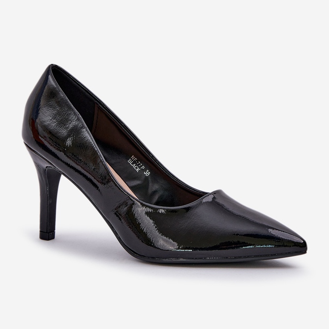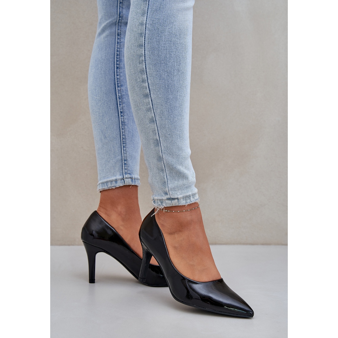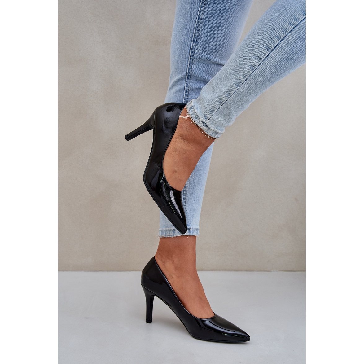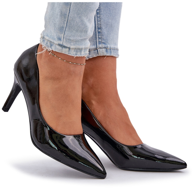 Vous recherchez les épingles parfaites pour votre collection? Voici les talons hauts élégants de la femme en cuir écologique verni dans une couleur noire classique, la femme à la mode! Grâce aux orteils pointus, ces talons hauts mettent l'accent sur le style délicat et féminin, et leur surface brillante leur donne un éclat unique, qui attirera certainement vos yeux.