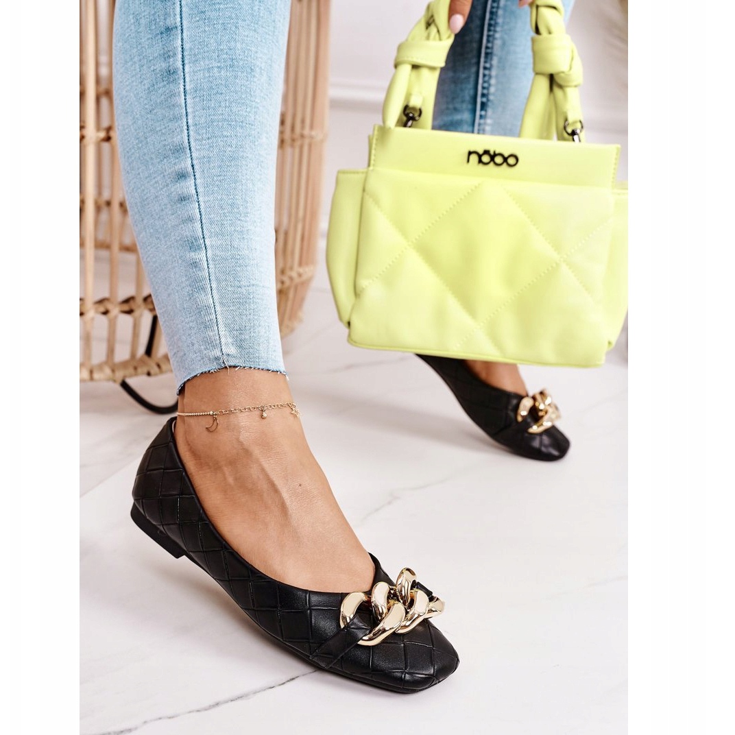 Détails: PS1 Élégantes ballerines noires Coco matelassées avec chaîne le noir