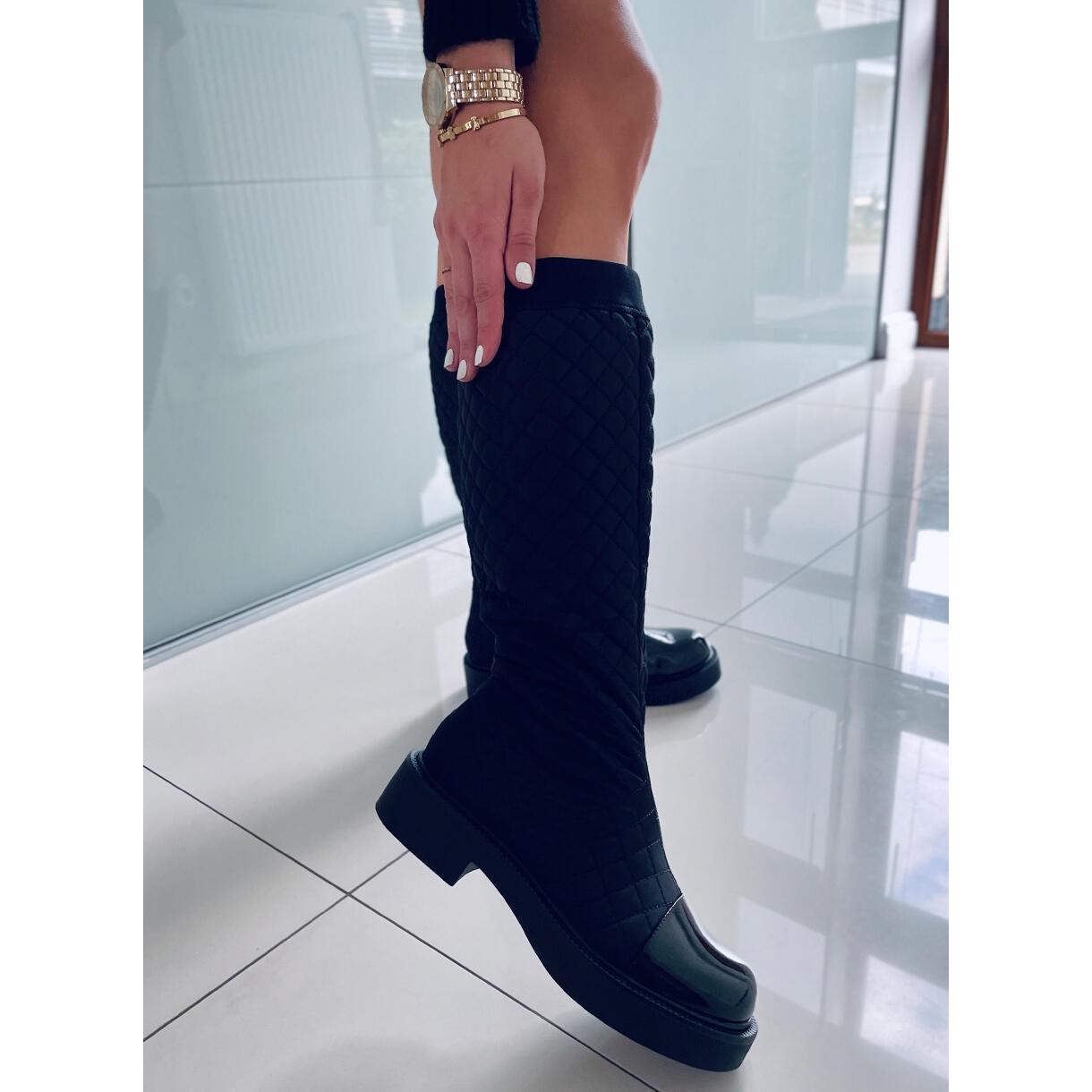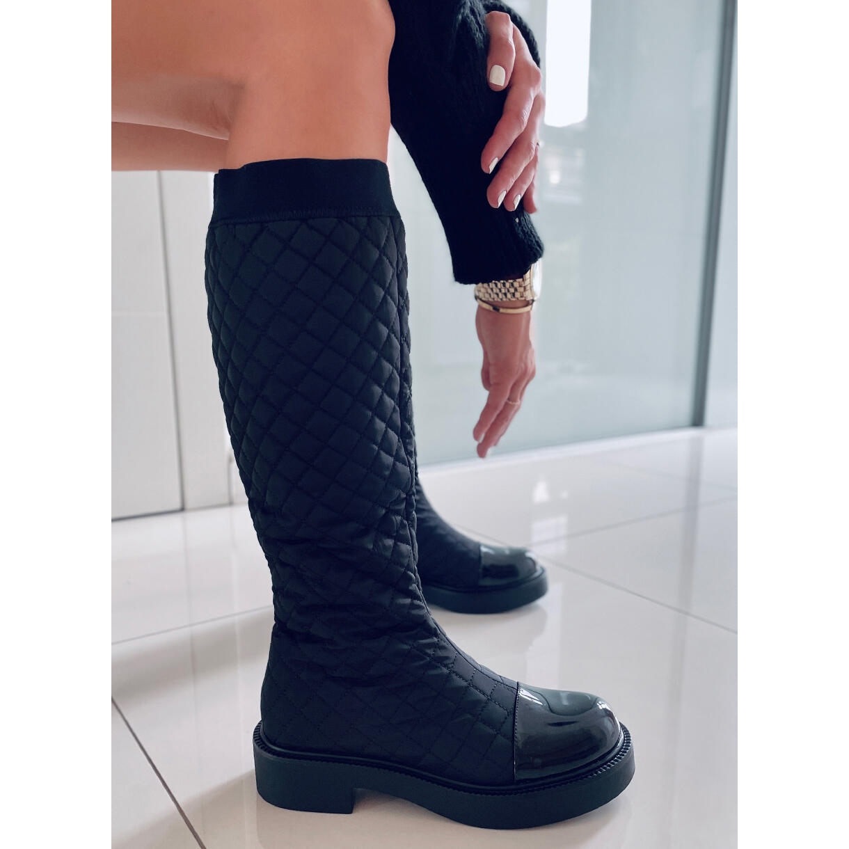 Découvrez les élégantes bottes matelassées Coco Black - des chaussures parfaites pour toutes les femmes qui souhaitent allier style et confort. Ces bottes noires à semelle plate se distinguent par un matelassage tendance inspiré de l'élégance de Coco chanelki. Les bouts laqués ajoutent une touche de luxe et leur design classique les rend parfaits pour les styles quotidiens et plus formels.