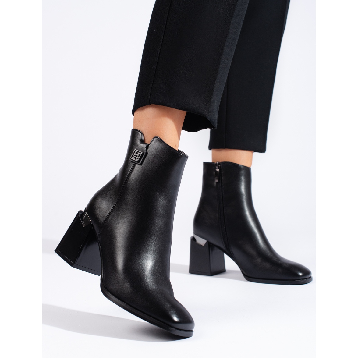 Le produit, qui est d'élégantes bottines noires à talons hauts de W. Potocki, est destiné aux femmes. Le modèle se caractérise par la simplicité et l'élégance. La tige de la chaussure est en cuir écologique et la semelle intérieure est en tissu. Les bottes confortables ont une hauteur supérieure de 10 cm et sont parfaites pour les journées plus froides grâce à l'isolation. Ils tiennent bien sur la jambe grâce à la fermeture éclair. Les talons aiguilles d'une hauteur de 6 cm affinent les silhouettes des femmes.