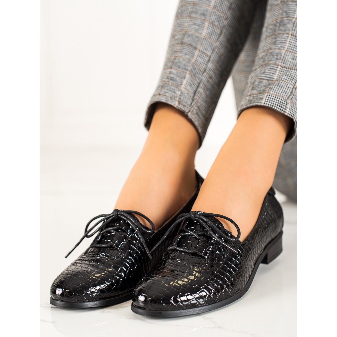Fabriquée à partir de matériaux de haute qualité, la tige des chaussures est composée à 100 % de cuir écologique verni, ce qui garantit durabilité et apparence à la mode. Un contrefort de talon souple et un intérieur composé à 50 % de cuir naturel garantissent un confort de port et un ajustement parfait au pied.