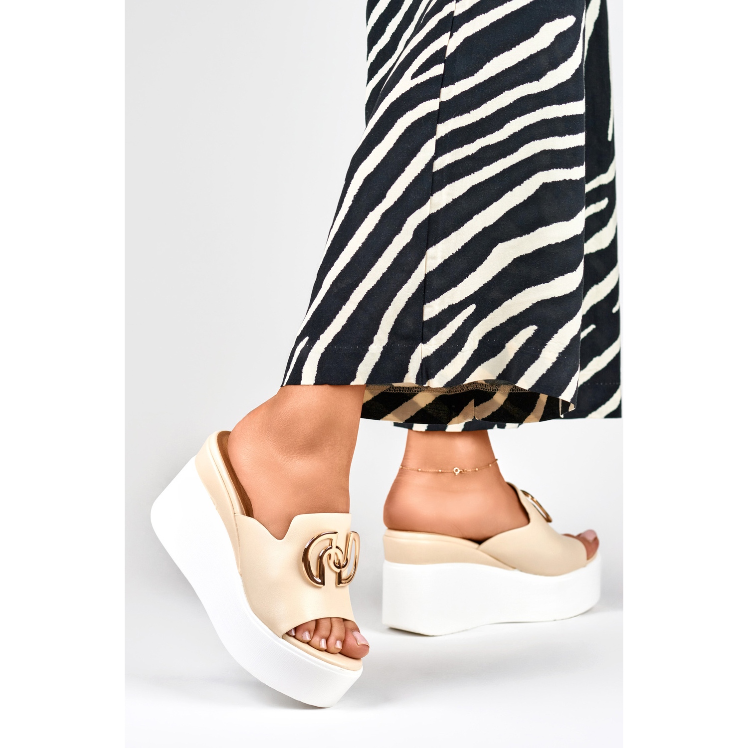 Détails: Élégantes pantoufles compensées beiges pour femmes