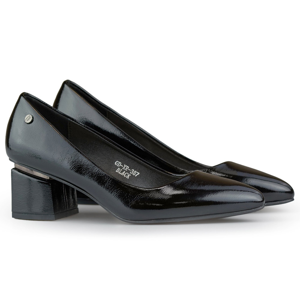 Détails: Élégants escarpins noirs vernis à talons mi-hauts