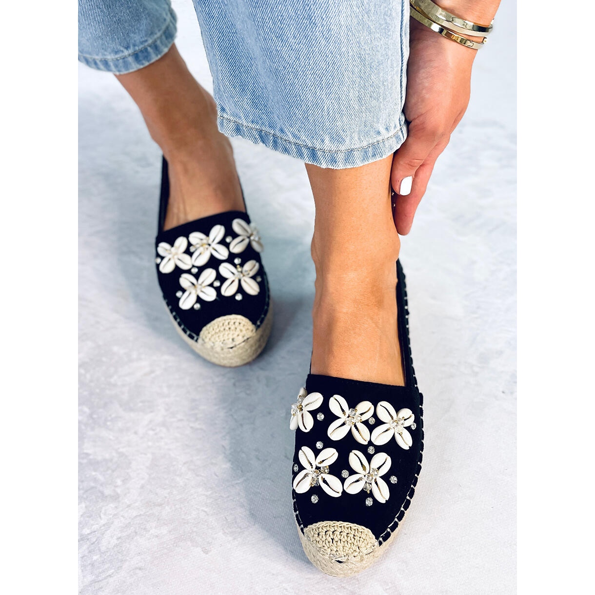 Détails: Elif Espadrilles noires à coquillages