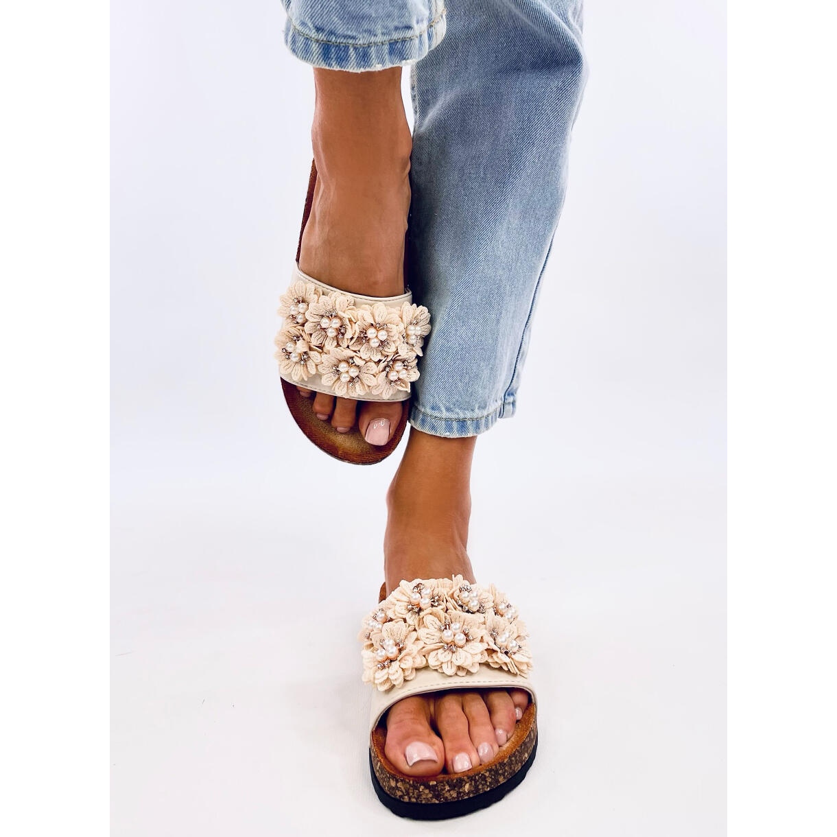 Détails: Emiles Chaussons en liège beige à fleurs