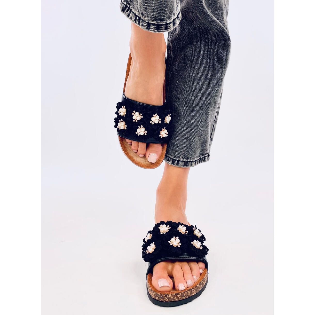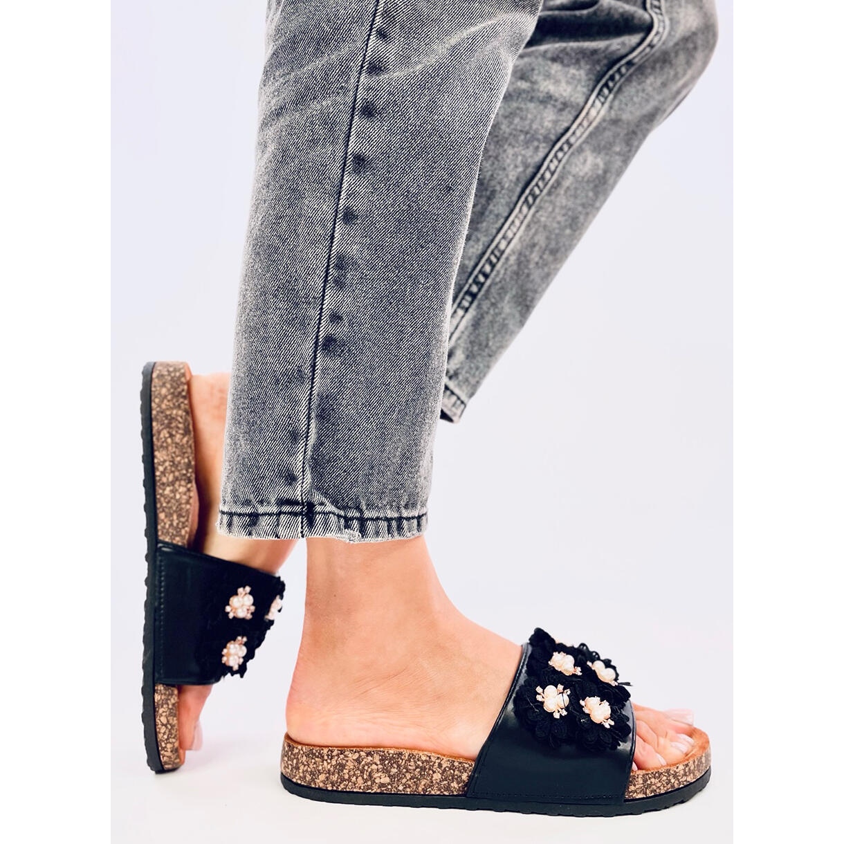 Détails: Emiles Tongs en liège noir à fleurs le noir