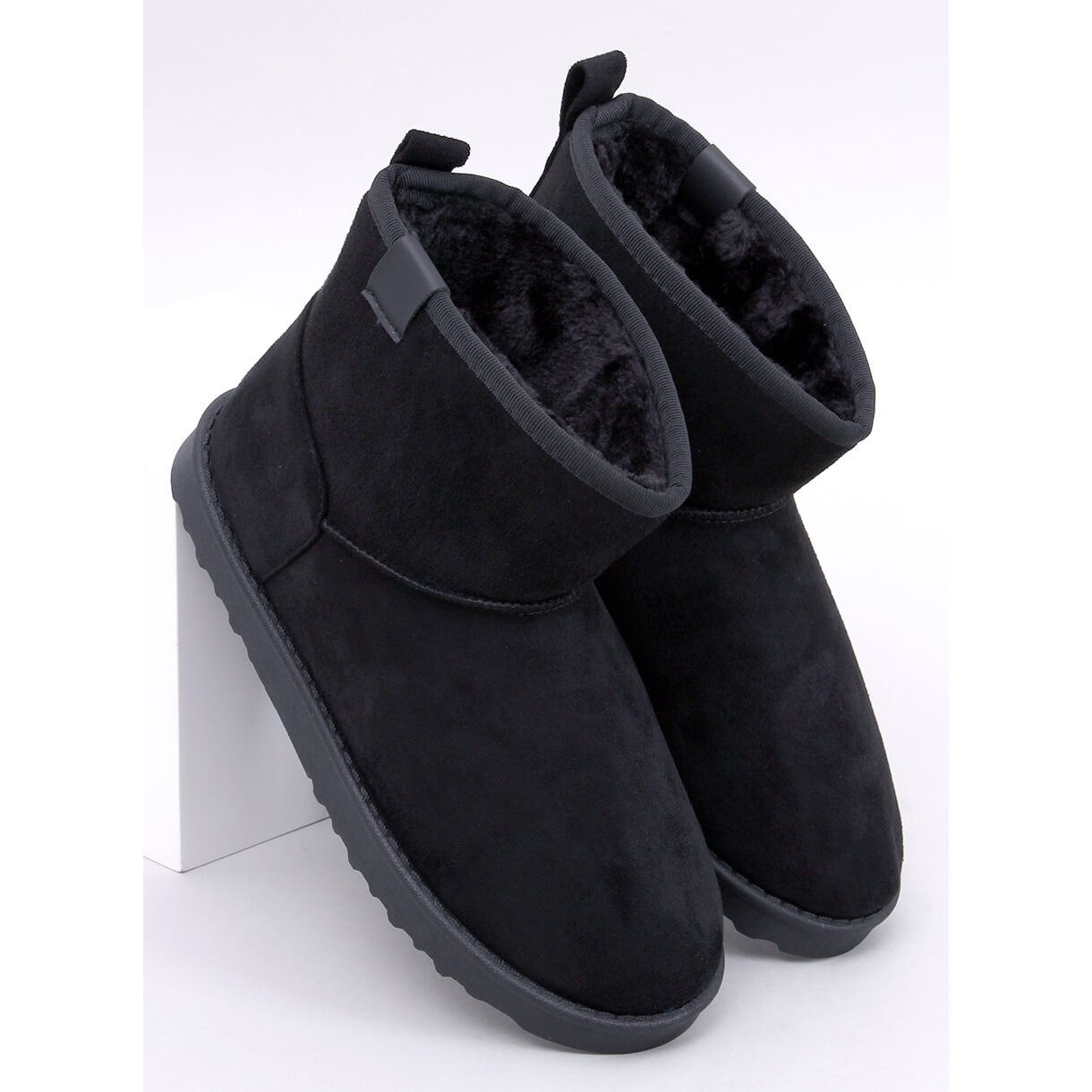 Fabriquées en daim écologique de haute qualité, ces chaussures sont une solution idéale pour les personnes qui apprécient une approche écologique de la mode et ne veulent pas renoncer à une apparence élégante. Le matériau noir et lisse à partir duquel les bottes de neige sont fabriquées les rend assorties à presque toutes les tenues d'hiver, leur ajoutant classe et style intemporel.