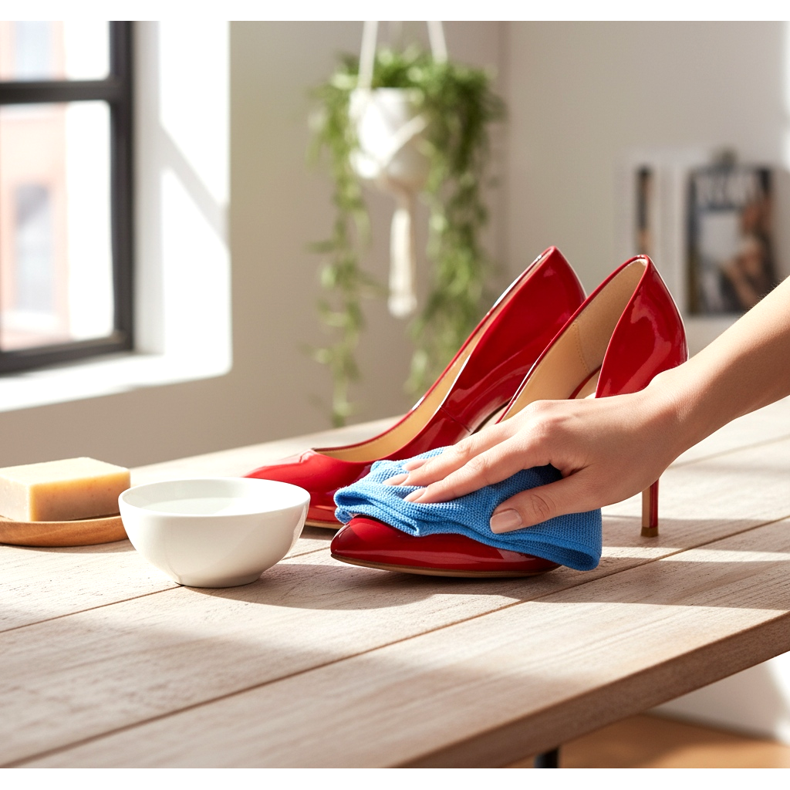 Lorsqu’il s’agit de nouvelles chaussures en cuir verni, la première étape est le nettoyage. De nombreuses chaussures neuves sont recouvertes d’une poussière d’usine invisible, ce qui peut affecter leur brillance. Essuyez-les délicatement avec un chiffon doux et humide, de préférence en microfibre, qui ne rayera pas la surface. Si vos chaussures sont déjà légèrement sales, utilisez de l'eau tiède et un peu de savon propre. N'utilisez jamais d'eau chaude ou de produits de nettoyage abrasifs car ils pourraient endommager la peinture.