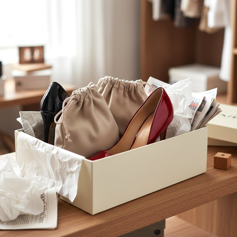Le cuir verni est plus sensible aux fissures et aux rayures que le cuir naturel. Pour éviter tout dommage, rangez vos chaussures en cuir verni dans un sac ou une boîte souple, à l'abri de la lumière directe du soleil. La lumière du soleil peut décolorer la peinture et la rendre plus cassante. Si vos chaussures sont mouillées, laissez-les sécher naturellement, jamais à proximité d'une source de chaleur. Placez-les dans un endroit bien aéré avec du papier ou des journaux à l'intérieur pour absorber l'humidité. L'humidité est l'ennemi du cuir verni : elle peut entraîner des moisissures et une perte de brillance.