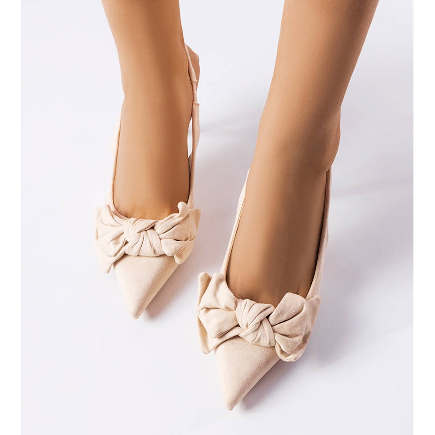 Les talons hauts sont fabriqués en cuir suédé écologique de haute qualité, ce qui les rend confortables et en même temps intemporels et chics. La couleur beige des chaussures garantit qu'elles s'adapteront à pratiquement toutes les tenues, agissant comme une base subtile mais raffinée pour votre look.