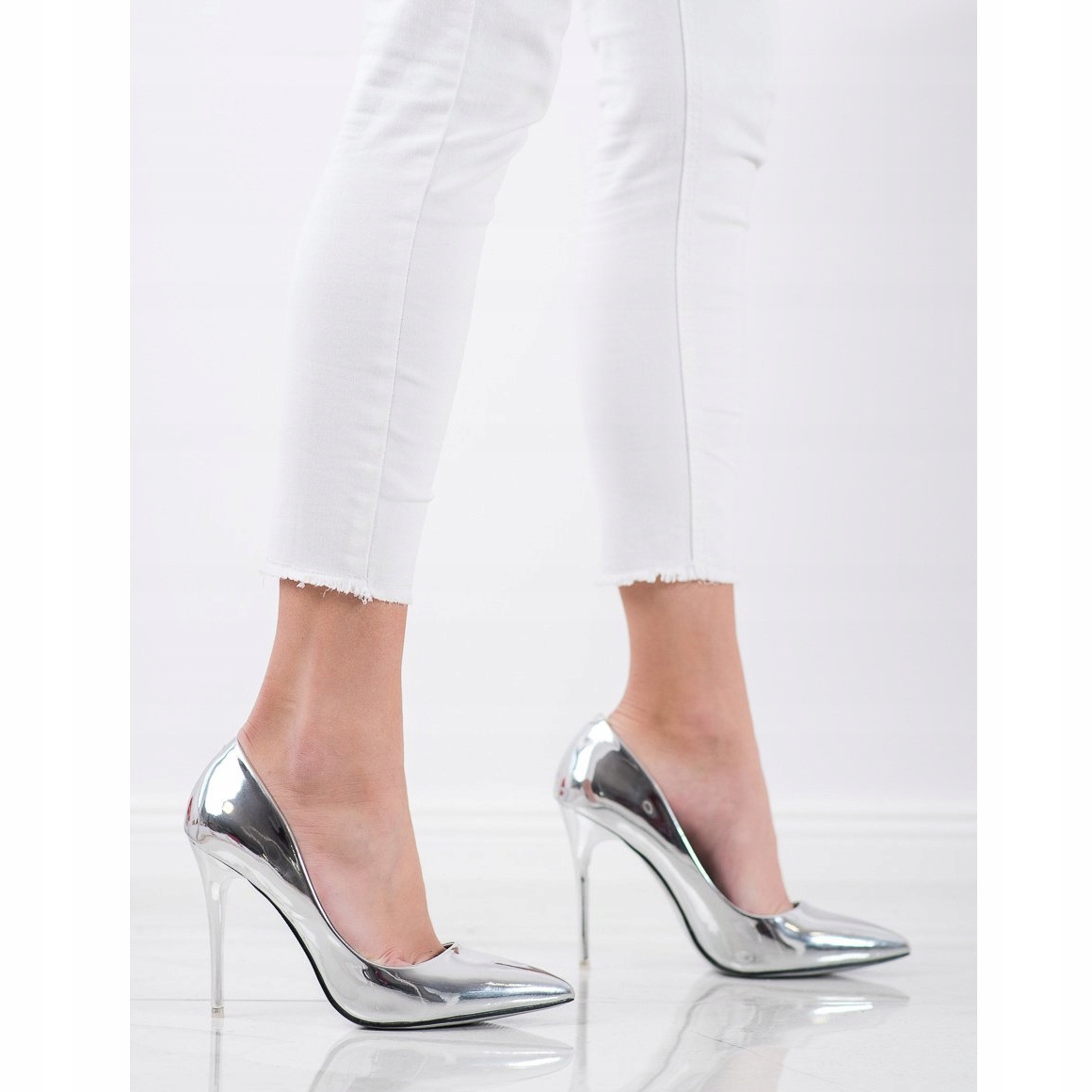 Fabriqués en cuir écologique d'une couleur argentée intense et brillante, ils attirent l'attention et ajoutent du chic à n'importe quel style. Leurs bouts arrondis et pointus et leur talon intégré et rigidifié apportent non seulement un aspect esthétique, mais aussi un confort de port. Grâce à la semelle synthétique et lisse, vous gagnez considérablement en stabilité.
