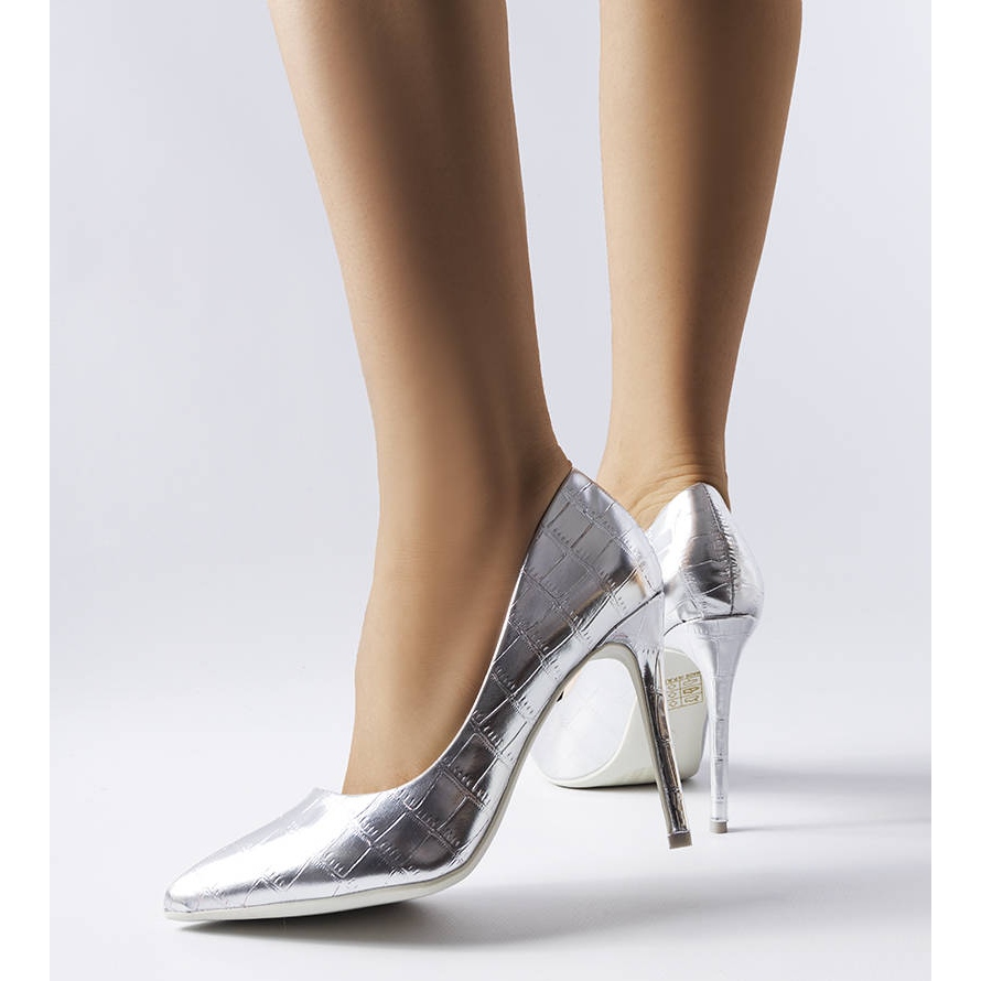 Découvrez l'élégance et la féminité avec les escarpins Raison de PA1, qui séduisent non seulement par leur aspect, mais aussi par leur confort de port. Ces talons hauts argentés avec gaufrage en peau de crocodile sont le choix parfait pour les femmes qui veulent se démarquer de la foule. Un talon fin et haut de 10 cm et un bout pointu donnent aux pieds un aspect phénoménal et affinent la silhouette.
