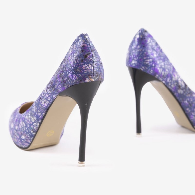 Les talons hauts violets se caractérisent par un talon haut en forme de talon aiguille de 10 cm, qui ajoute de l'élégance et du charme à la silhouette. Le bout pointu souligne la finesse du pied et le design à enfiler les rend non seulement élégants, mais aussi confortables à enfiler. La hauteur des chaussures est de 16 cm, ce qui les rend parfaites à porter aussi bien avec des robes qu'avec des pantalons.