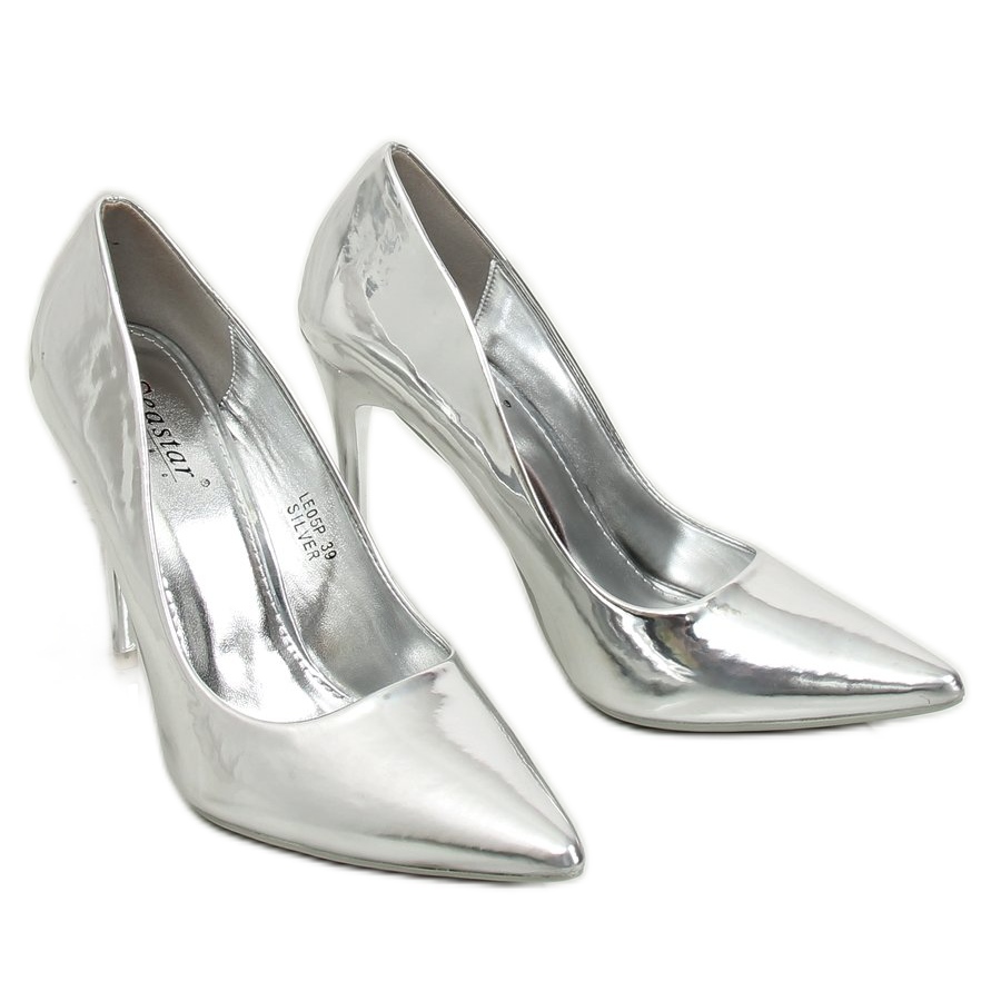 Nous vous présentons les talons hauts métalliques LE05P pour femmes dans une élégante teinte argentée, qui attirera certainement l'attention de toutes les femmes qui souhaitent avoir un look unique. Ces escarpins combinent un design classique avec une touche moderne, ce qui en fait le choix parfait pour une variété d'occasions, des soirées élégantes aux soirées.