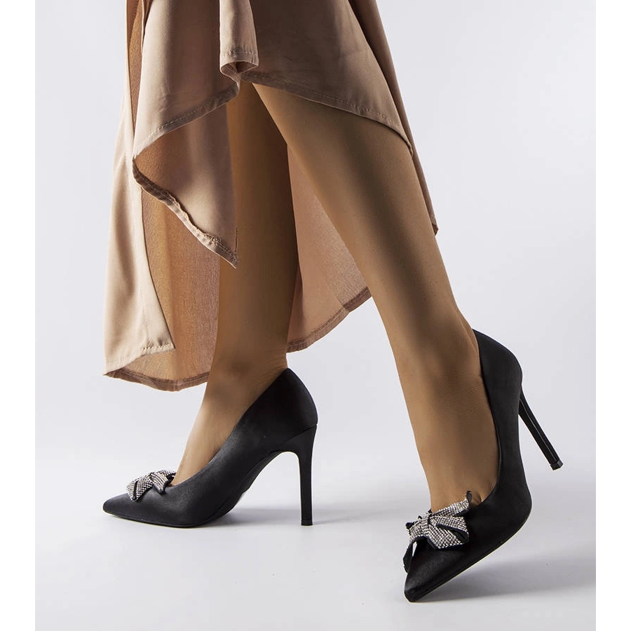 Talons hauts noirs avec une finition satinée avec un arc - élégance et style pour chaque occasion