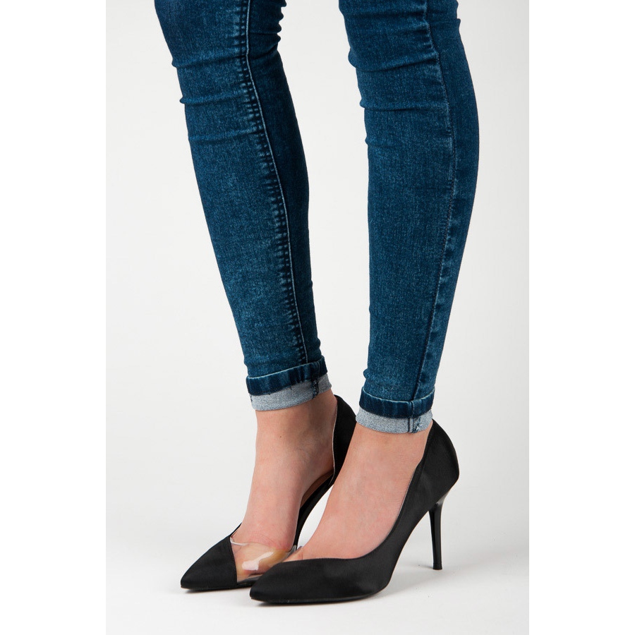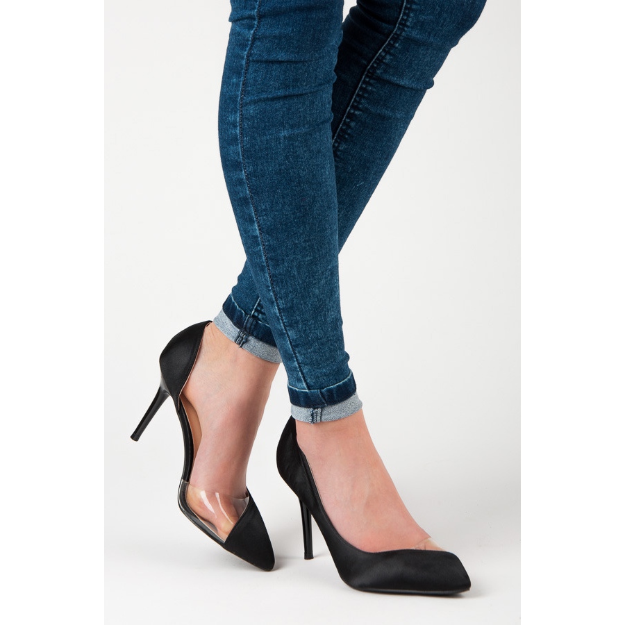 Découvrez un style unique avec des talons hauts noirs transparents en satin. Ces élégantes chaussures à talons hauts combinent un design classique et moderne, attirant l'attention avec un élément transparent unique sur la pointe. Ils semblent être à moitié coupés, ce qui leur donne de l'originalité et permet à chaque utilisateur de se sentir spécial.