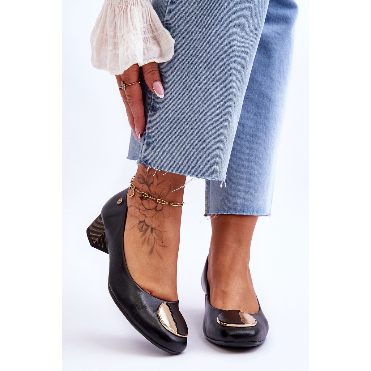 Les escarpins se caractérisent par un design minimaliste, sur le devant ils sont ornés d'un subtil élément décoratif en forme de cercle, qui leur ajoute de l'élégance. La semelle intérieure en cuir naturel souple assure un ajustement et un confort parfaits, ce qui les rend parfaites pour diverses occasions, aussi bien pour le bureau que pour les réunions sociales.