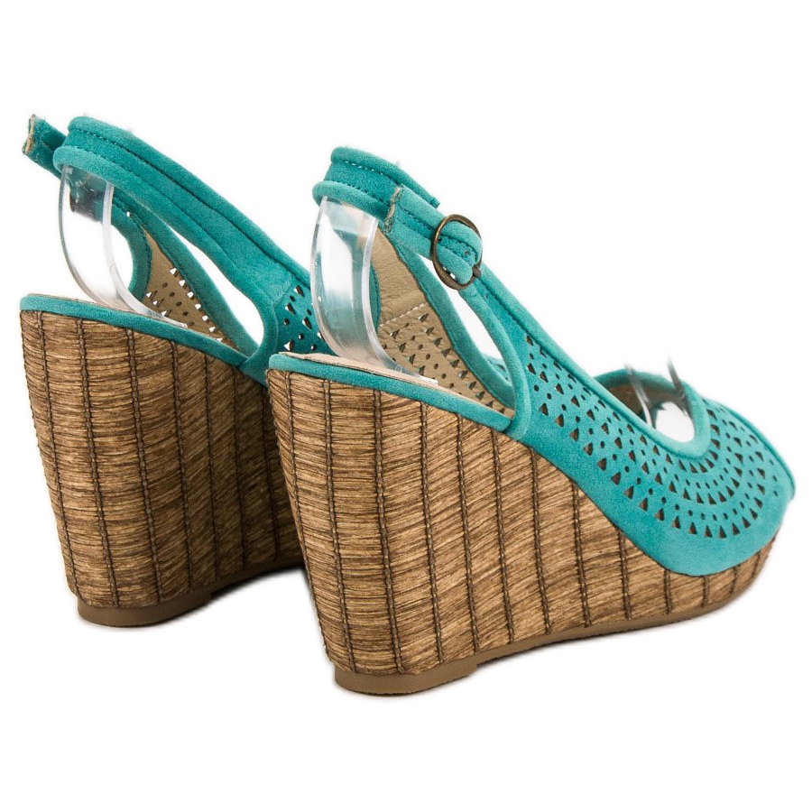 Les escarpins sont placés sur une cale, ce qui assure stabilité et confort lors de la marche. La hauteur est de 8 à 10 cm et grâce à la plateforme de 1,5 cm de hauteur, chaque marche devient confortable, même pendant les longues journées. Le talon ouvert permet une libre circulation de l'air, ce qui est extrêmement important lors des chaudes journées d'été.
