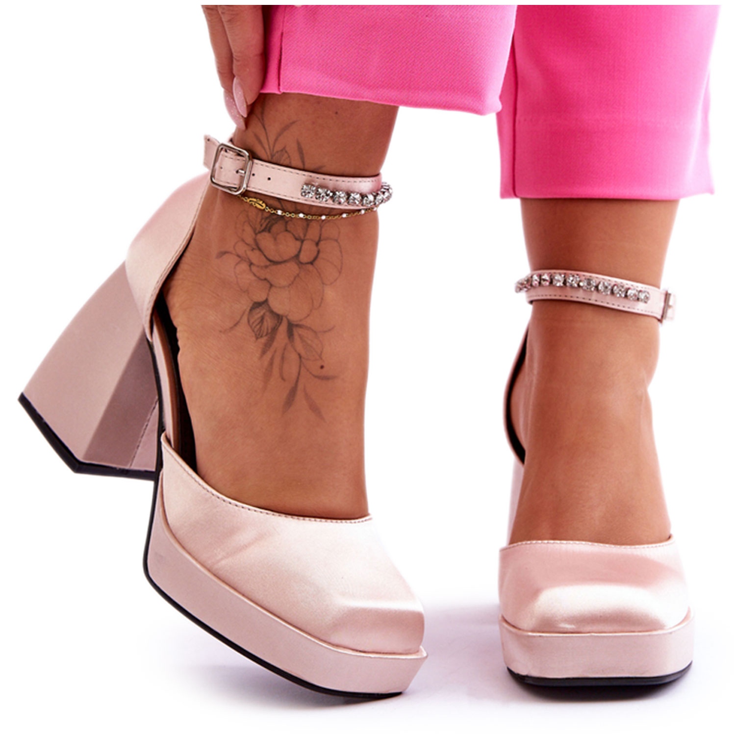 Détails: Escarpins à la mode sur talons massifs avec zircons beige Adel