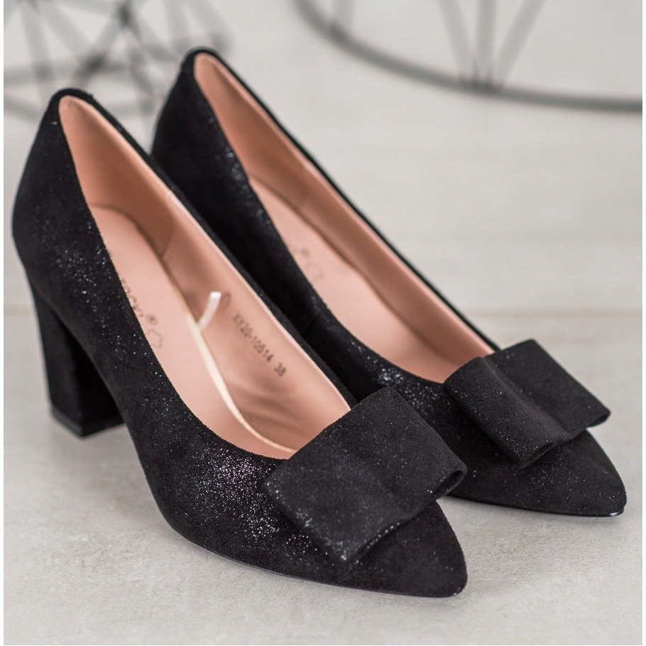 Les escarpins W. Potocki en brocart noir avec nœud sont un choix parfait pour toutes les femmes qui souhaitent allier élégance et confort. Ces chaussures élégantes sont parfaites pour les soirées, les fêtes et les célébrations. Fabriqués en imitation daim, ils surprennent non seulement par leur esthétique, mais aussi par leur confort de port.