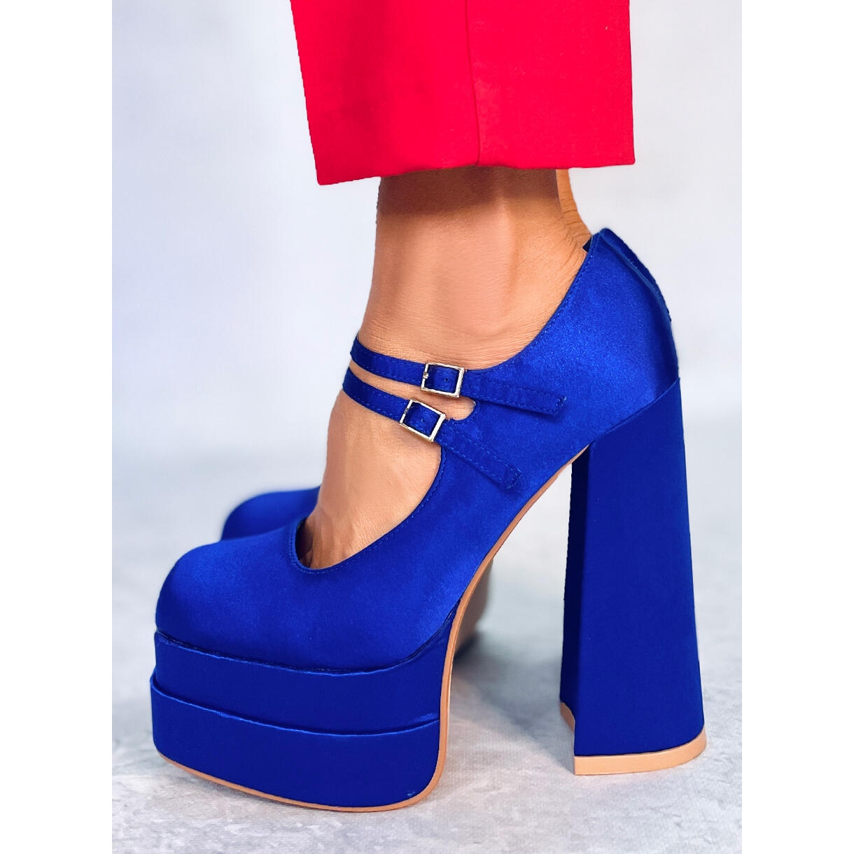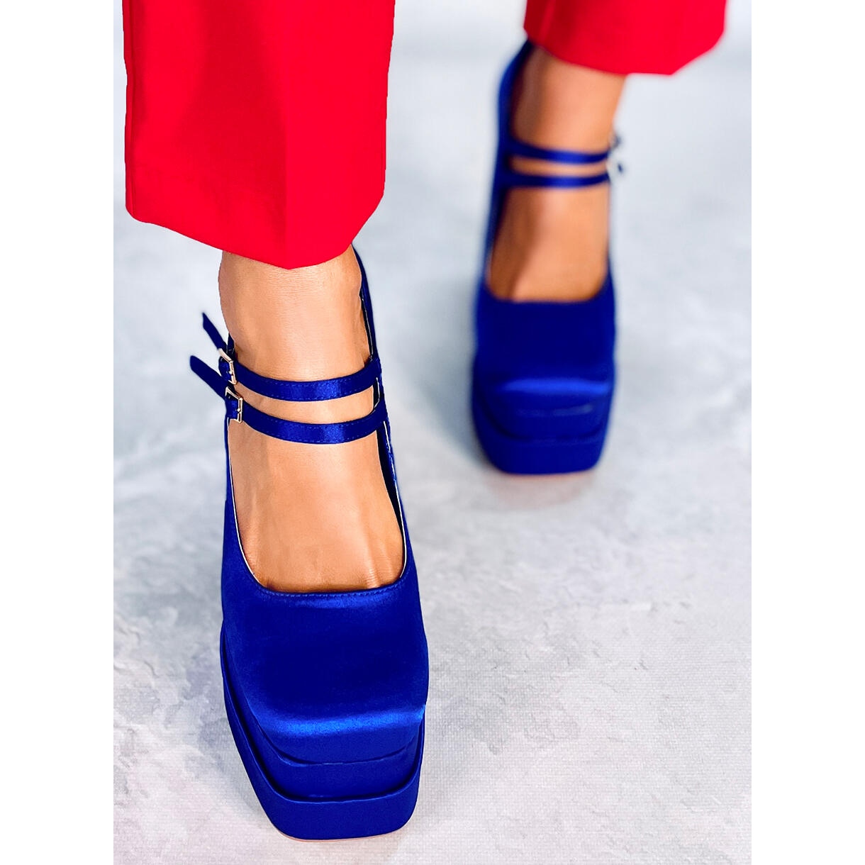 Inna marka Escarpins à plateforme en satin bleu Prandi