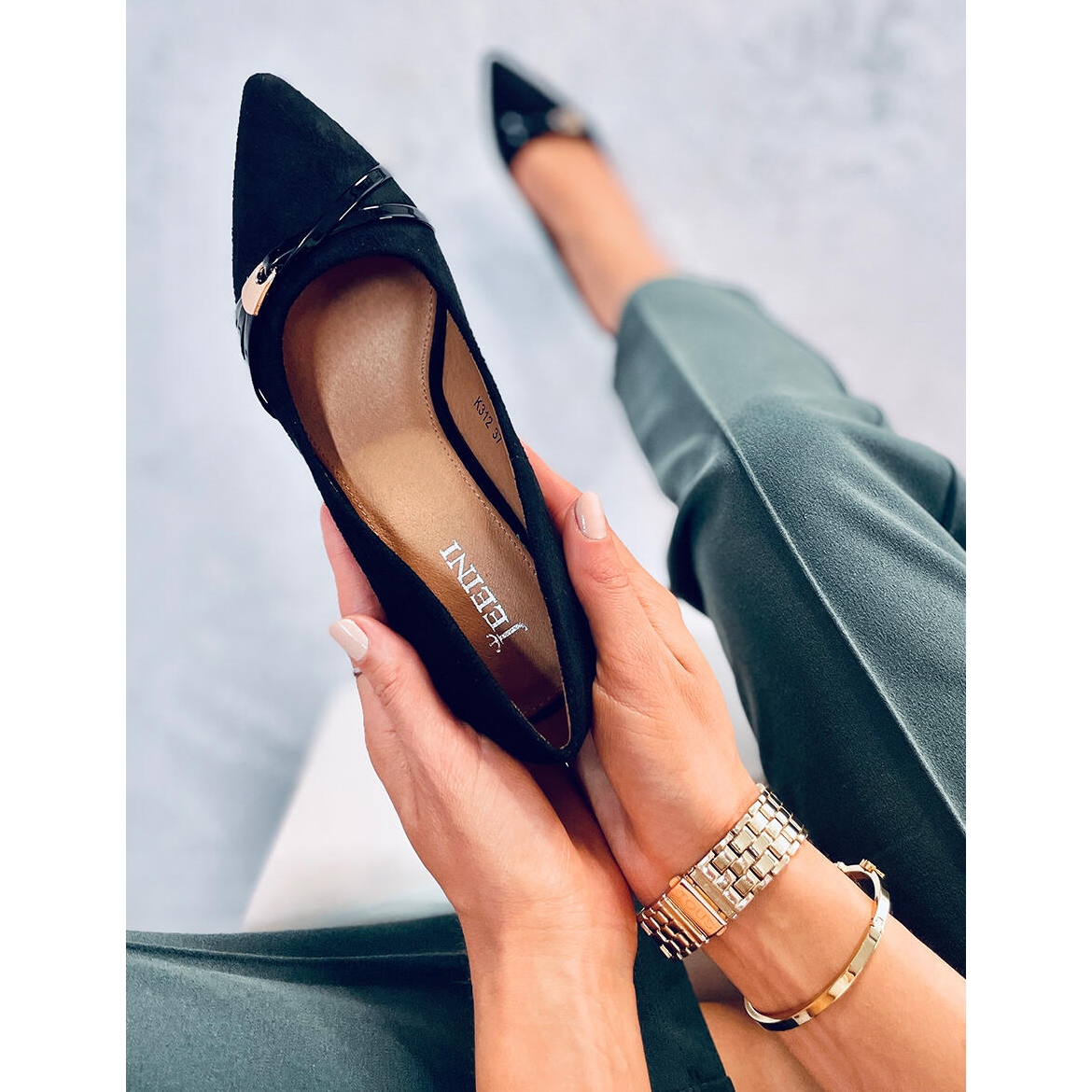 Fabriqués en daim écologique de haute qualité, les escarpins sont non seulement élégants, mais également respectueux de l'environnement. À l'intérieur se trouve un insert en cuir écologique, qui assure un confort maximal lors du port. De plus, grâce au simple fermoir à enfiler, ils sont faciles à mettre et à enlever.