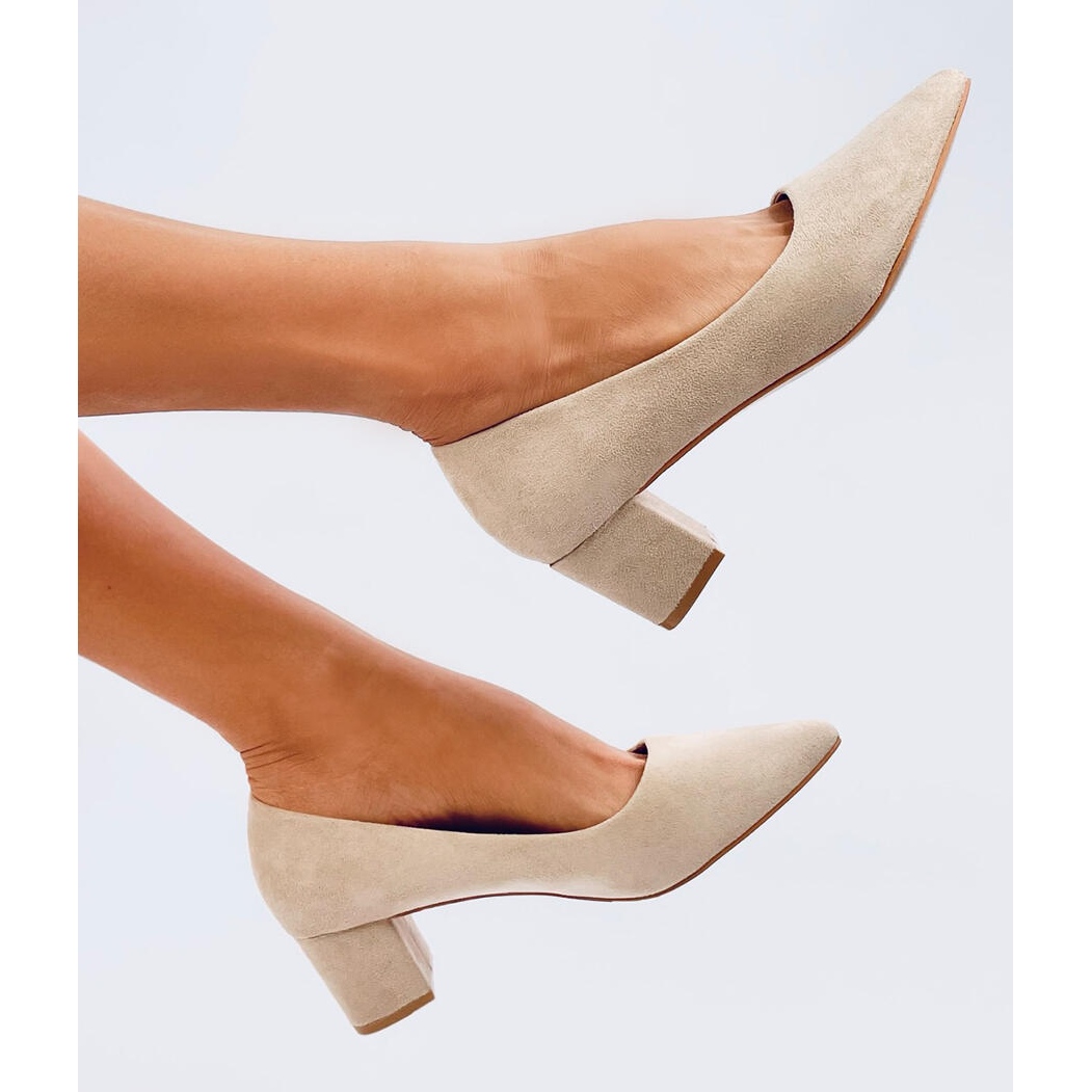 Trebersi Abricot Low-Hehee Pumps dans une teinte beige est le choix parfait pour les femmes qui apprécient l'élégance et le réconfort chaque jour. Ces pompes en daim se distinguent non seulement par un style unique, mais aussi une conception bien pensée, assurant du confort lors du port.