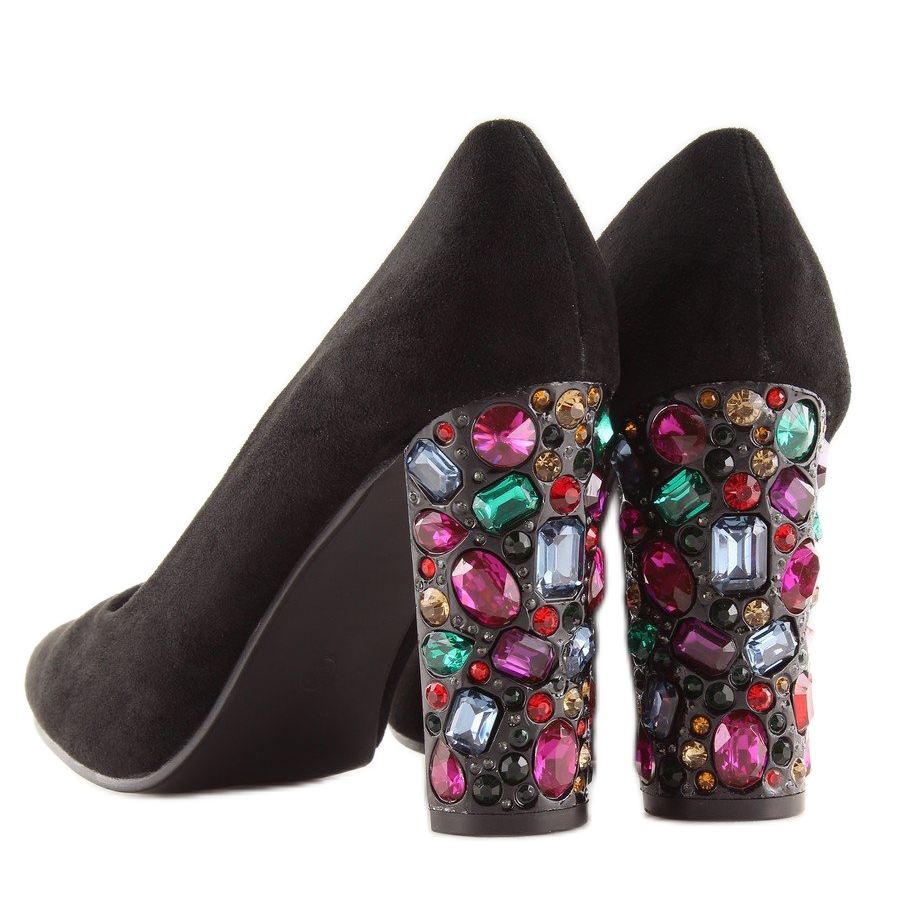 Les escarpins noirs avec talon décoré YQ204P Black sont un choix parfait pour les femmes qui souhaitent ajouter un peu de brillance et d'élégance à leur style. Ce modèle se distingue non seulement par sa coupe soignée, mais aussi par un talon joliment décoré de 10 cm de haut et orné de pierres colorées accrocheuses.