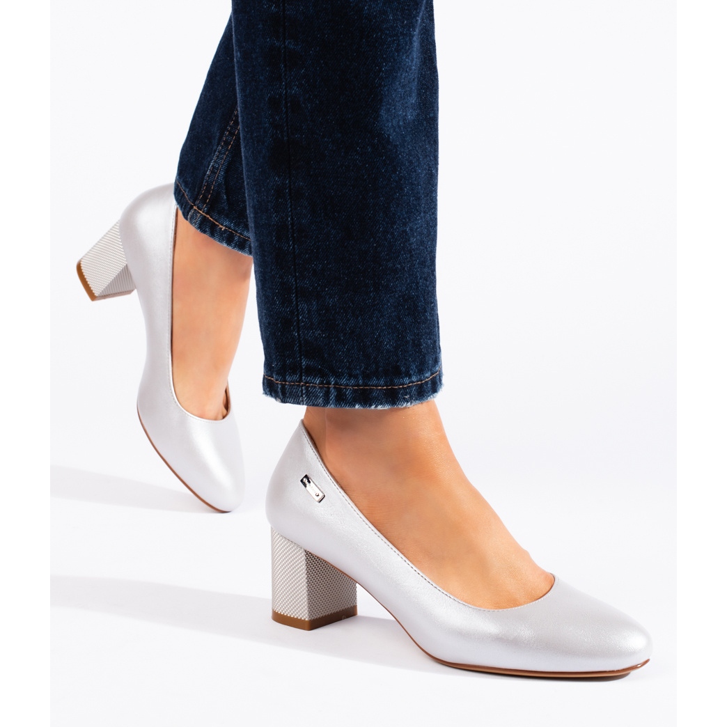 L'intérieur des chaussures a été fini avec du cuir naturel, ce qui assure une ventilation et un confort optimaux lors de la marche. Une semelle en plastique lisse permet quelques étapes sur différentes surfaces. Le complément parfait aux tenues élégantes, ces pompes en argent deviendront certainement un élément préféré de votre collection de chaussures.