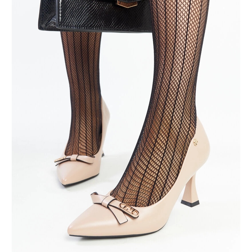 La hauteur du talon de 7,5 cm rend les pompes parfaites à la fois au quotidien et pour des occasions plus formelles. Fabriqué en matériaux de haute qualité, y compris le cuir écologique et le cuir naturel dans l'insert, assurez le confort toute la journée. Une saveur supplémentaire est un arc charmant qui met l'accent sur le caractère féminin de ce modèle.