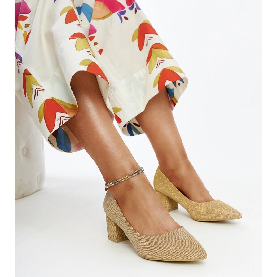 Détails: Escarpins à talons hauts brillants dorés Laity