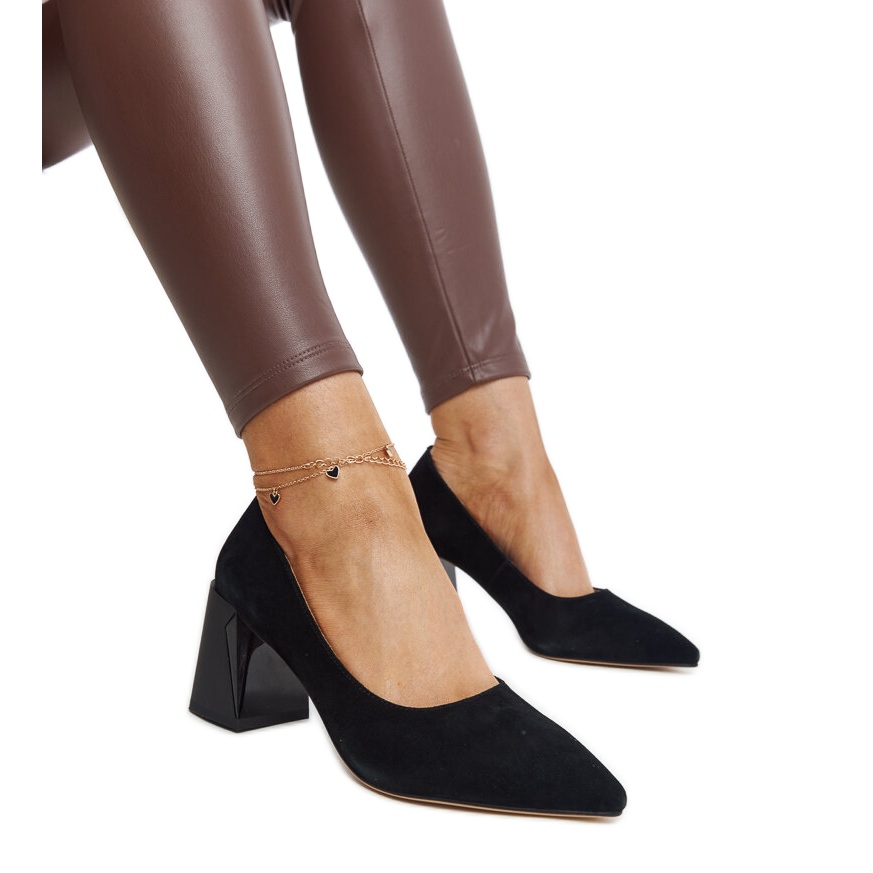 Les pompes sont en cuir en daim naturel de haute qualité, qui s'inscrit parfaitement dans les dernières tendances. Les couleurs noires classiques les font correspondre à de nombreux styles, des robes élégantes aux ensembles décontractés avec un jean. De plus, l'insert en cuir garantit le confort toute la journée, et une semelle en plastique solide garantit une durabilité et une bonne adhérence.