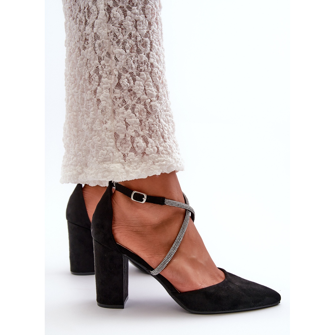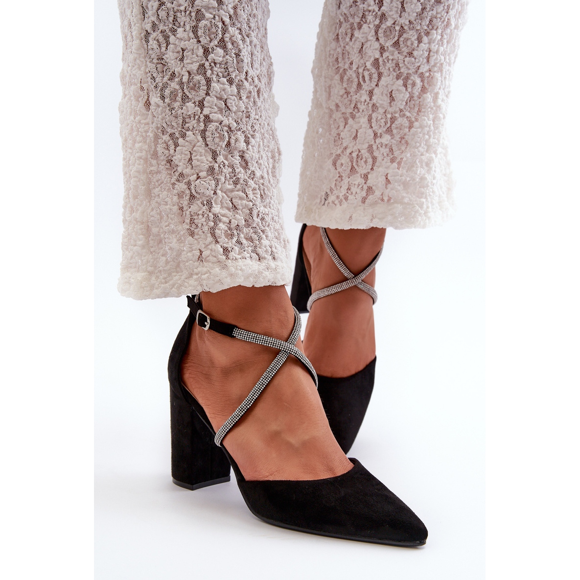 Découvrez l'élégance et le confort à chaque étape avec des pompes en daim Eco sur un post avec des zircons dans une couleur Lagra noire classique. Ces pompes uniques se distinguent par un daim écologique extrêmement doux, qui non seulement semble élégant, mais garantit également le confort de porter toute la journée.