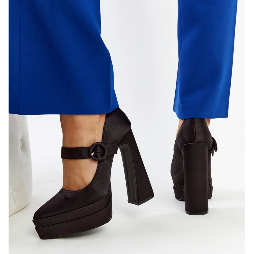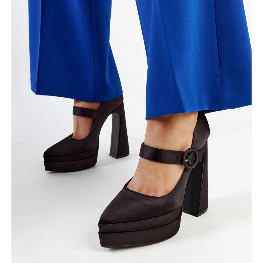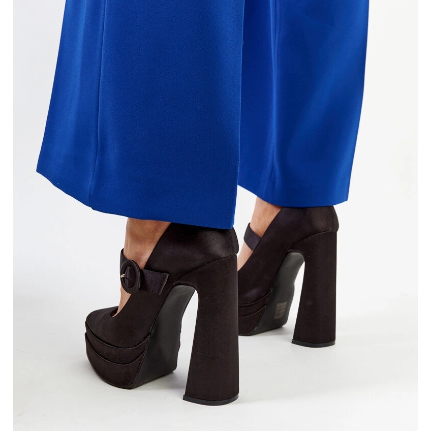 Les escarpins noirs à talons hauts attirent l'attention par leur design unique. Leur couleur - un noir profond et satiné, appelé Black par le fabricant - est un symbole de style classique qui s'associe parfaitement à différents styles, aussi bien aux robes de soirée qu'aux ensembles plus décontractés.