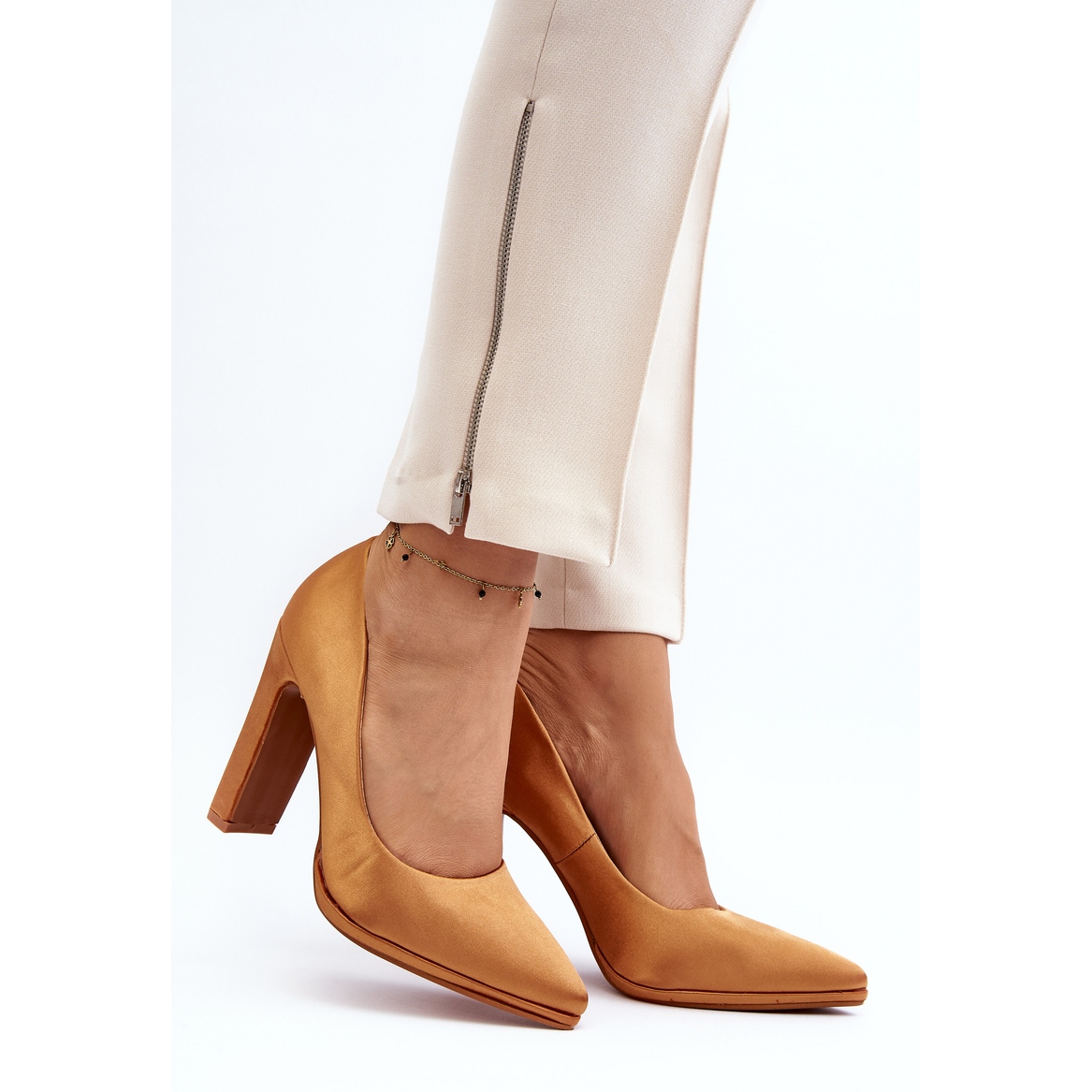 Le matériau à partir duquel les escarpins sont fabriqués est un tissu textile de haute qualité qui imite parfaitement le satin, ajoutant ainsi un aspect luxueux aux chaussures. La couleur unique « CAMEL » proposée par le fabricant est une nuance de brun universelle qui s'agence à de nombreuses couleurs et s'intègre facilement dans différents styles.