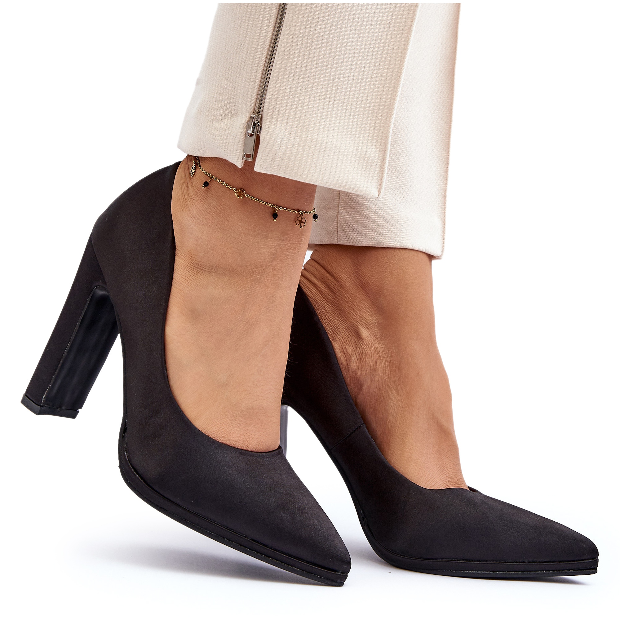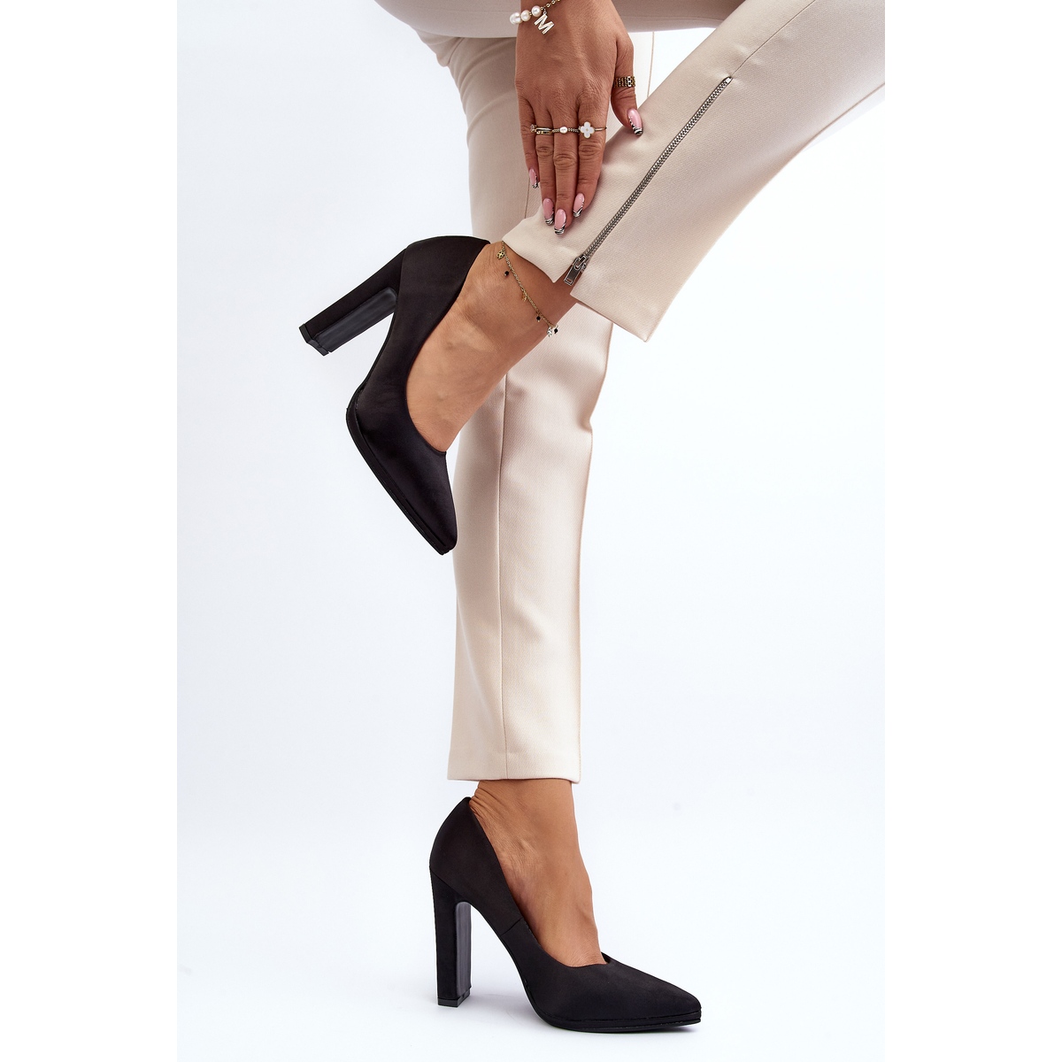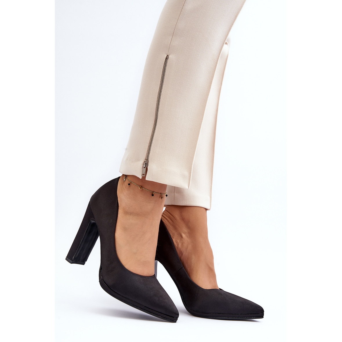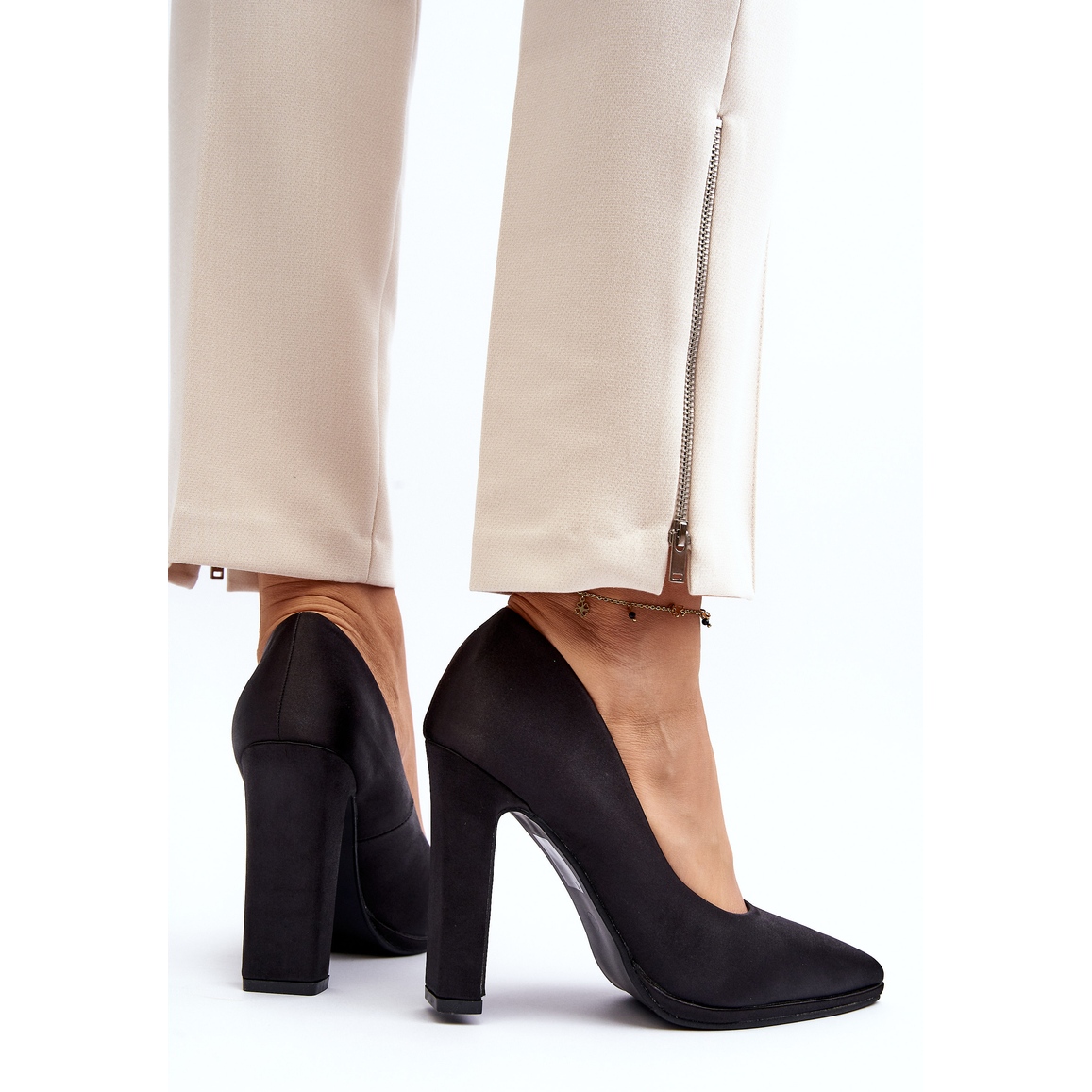 Le design de ces escarpins est une combinaison de modernité et d'élégance. La couleur noire dominante, avec un accent noir supplémentaire, rend ces chaussures extrêmement universelles et se marient bien avec différents types de garde-robe. Le talon en forme de bloc de 11 cm de haut garantit non seulement un look impressionnant, mais aussi une stabilité cruciale lors des longues soirées.