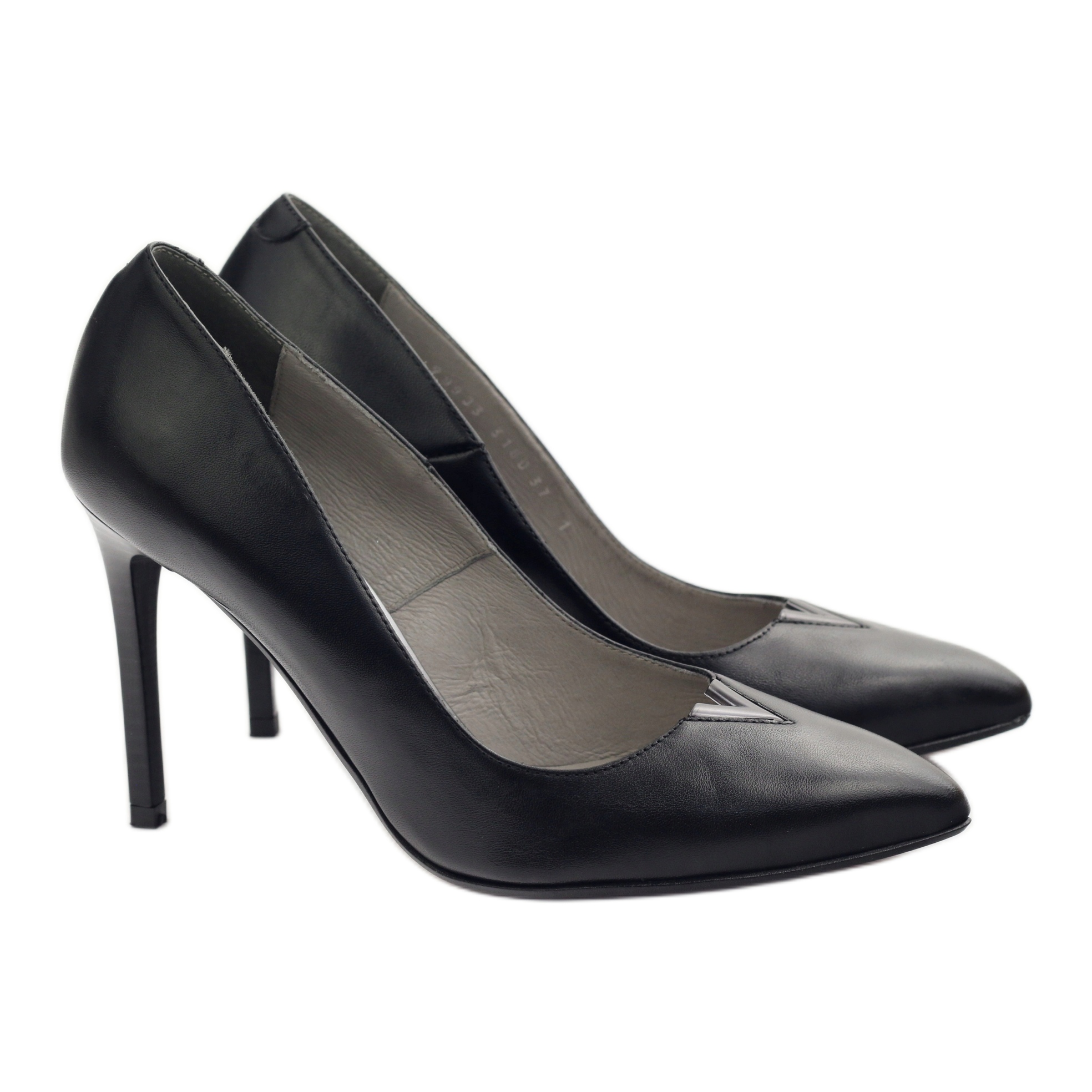 Découvrez l'élégance et la confiance en soi avec les escarpins à talons hauts Edeo pour femme. 3180 en couleur noire classique. Ces chaussures uniques, conçues par la célèbre marque polonaise Edeo, se distinguent non seulement par leur belle apparence, mais aussi par leur haute qualité de fabrication, ce qui en fait un choix idéal pour toute femme qui veut se sentir spéciale.