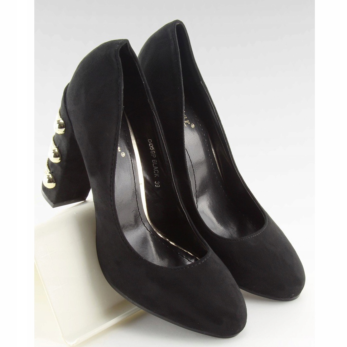 Les escarpins noirs à talons larges DD59P Black sont un choix parfait pour toutes les femmes qui souhaitent allier élégance et confort. Ces chaussures uniques à talon haut de 10,5 cm séduisent par leur coupe élégante qui met parfaitement en valeur la silhouette. Le talon orné d'une application dorée leur confère un caractère original, et la couleur noire les rend extrêmement universelles et faciles à combiner avec différents styles.