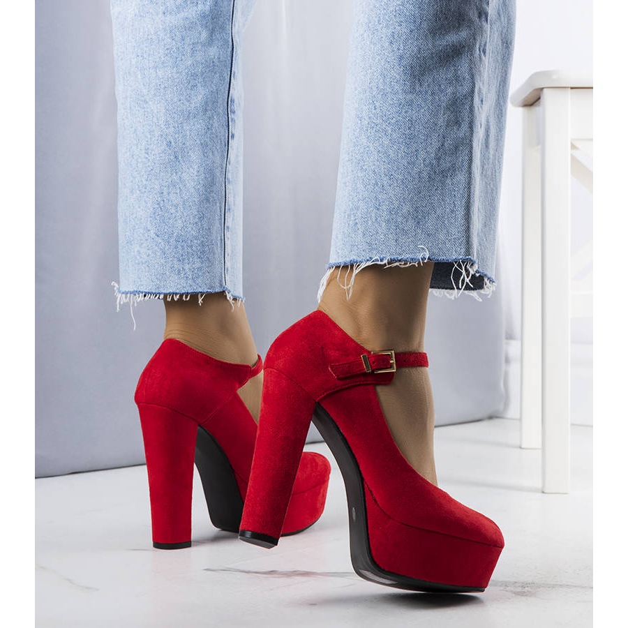 Fabriqués en éco-cuir suédé de haute qualité, les escarpins allient élégance et confort. La semelle intérieure est également en éco-cuir, ce qui assure un confort d'utilisation, même pendant une longue journée. Le modèle est disponible dans une couleur rouge uniforme, ce qui le rend parfaitement adapté aux dernières tendances.