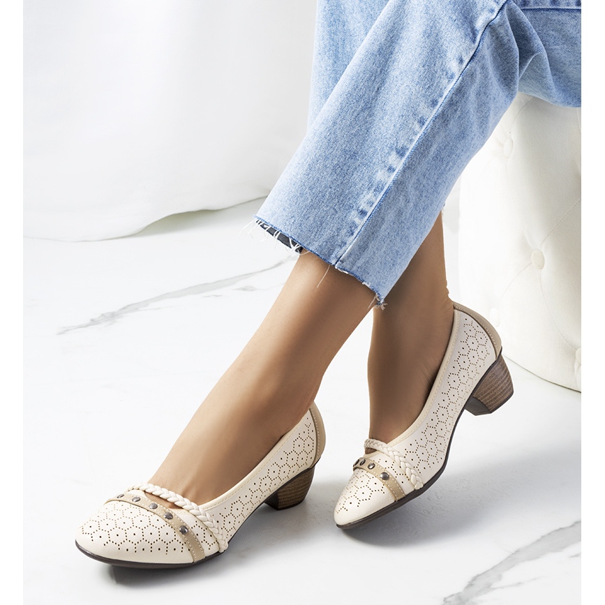 Nous vous présentons les escarpins Hernandez beiges ajourés, qui seront un complément parfait à votre garde-robe. Fabriquées en cuir écologique, ces chaussures élégantes allient design tendance et confort de port. Grâce au motif ajouré, vos pieds pourront respirer librement, ce qui rend les escarpins parfaits pour les journées chaudes.