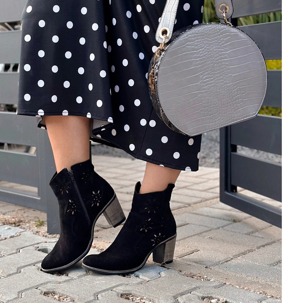 Élégant et pratique à la fois - ce sont des bottes féminines de Lena du fabricant polonais Olivier. Fabriqué à l'intérieur et à l'extérieur du cuir naturel (nubuk), assurez-vous du confort et agréable à la finition tactile. Le motif ouvert sur la tige ajoute la légèreté et permet à vos pieds de respirer, grâce à laquelle les bottes sont également super sans collants. Le modèle atteint la cheville (environ 15 cm), et la serrure pratique sur toute la longueur le rend plus facile à mettre.