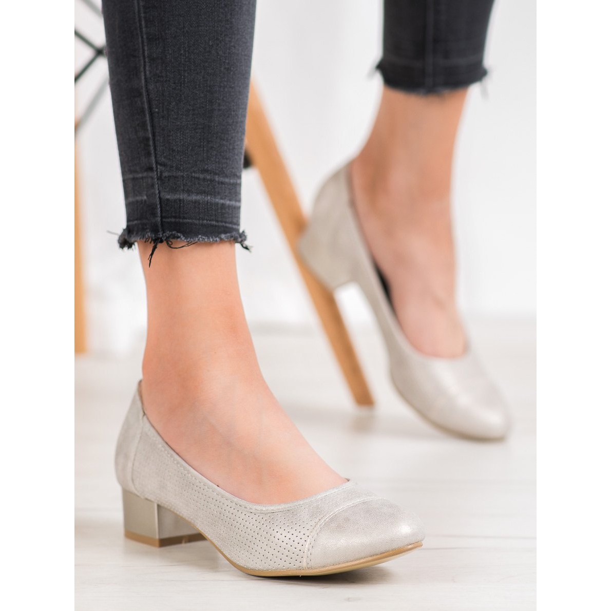 Découvrez les escarpins ajourés Goodin sur talon aiguille dans une élégante couleur dorée, qui sont la solution parfaite pour les sorties printanières et estivales. Ces chaussures élégantes pour femmes sont soigneusement fabriquées à partir de cuir écologique de haute qualité, ce qui les rend non seulement esthétiques, mais également respectueuses de l'environnement.