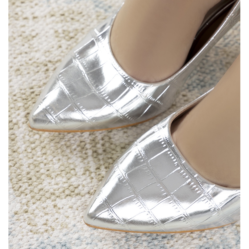 Détails: Escarpins argentés à motif peau de crocodile Matilda